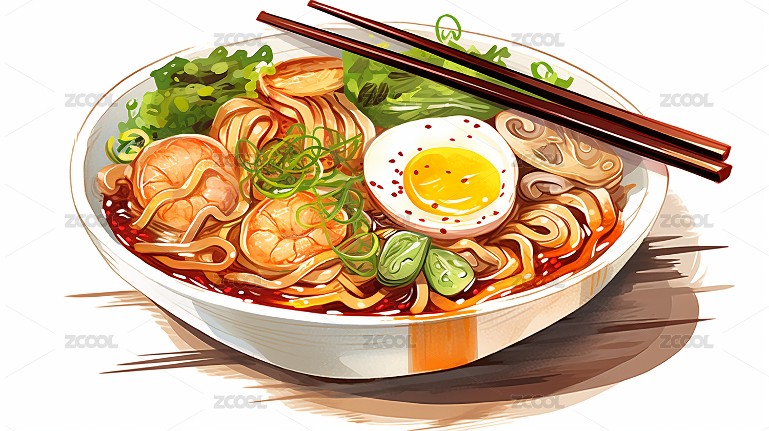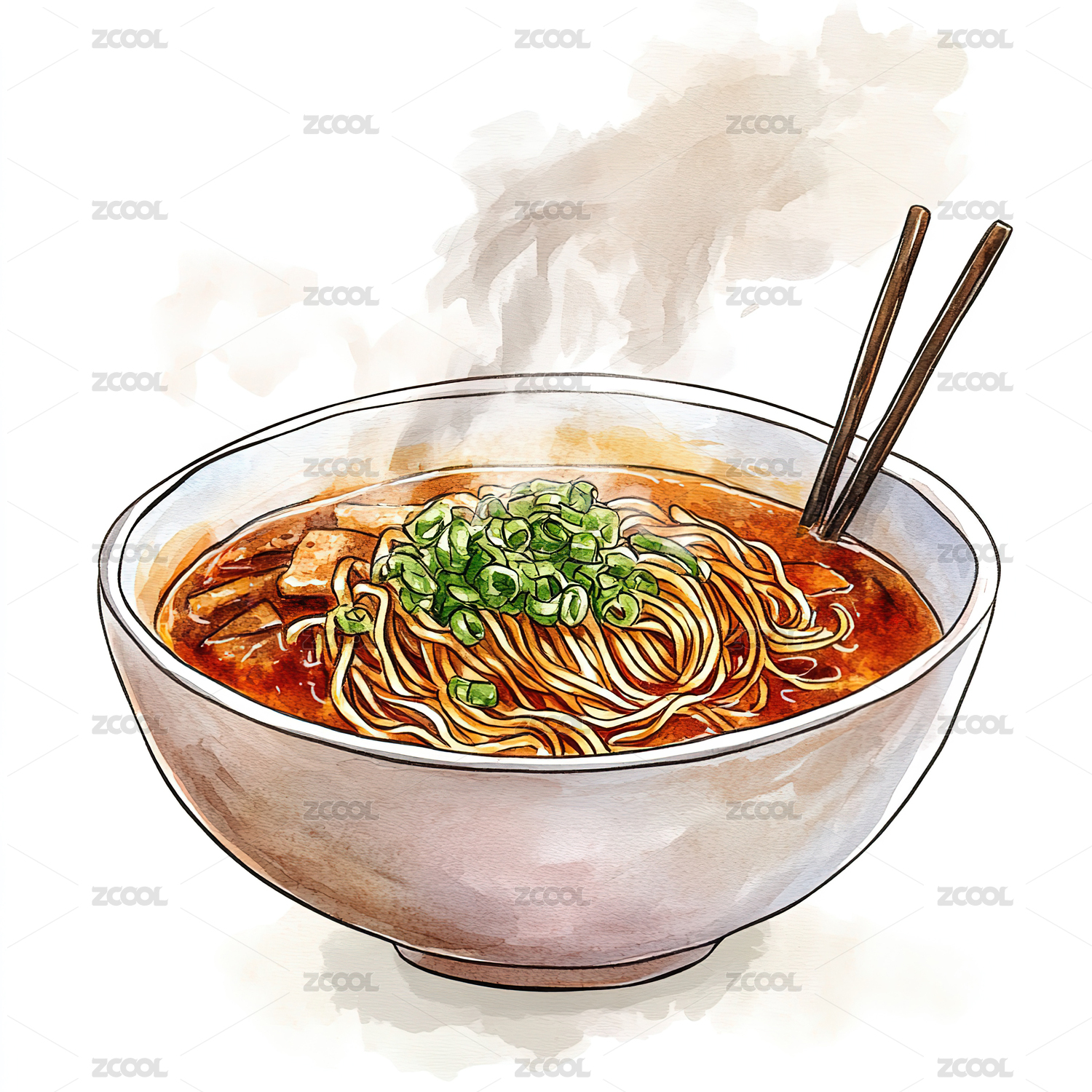 传统,花纹,碗装,蔬菜,牛肉,汤面,插画,图案,美食,餐饮