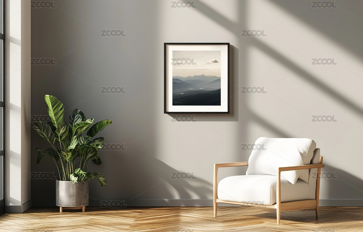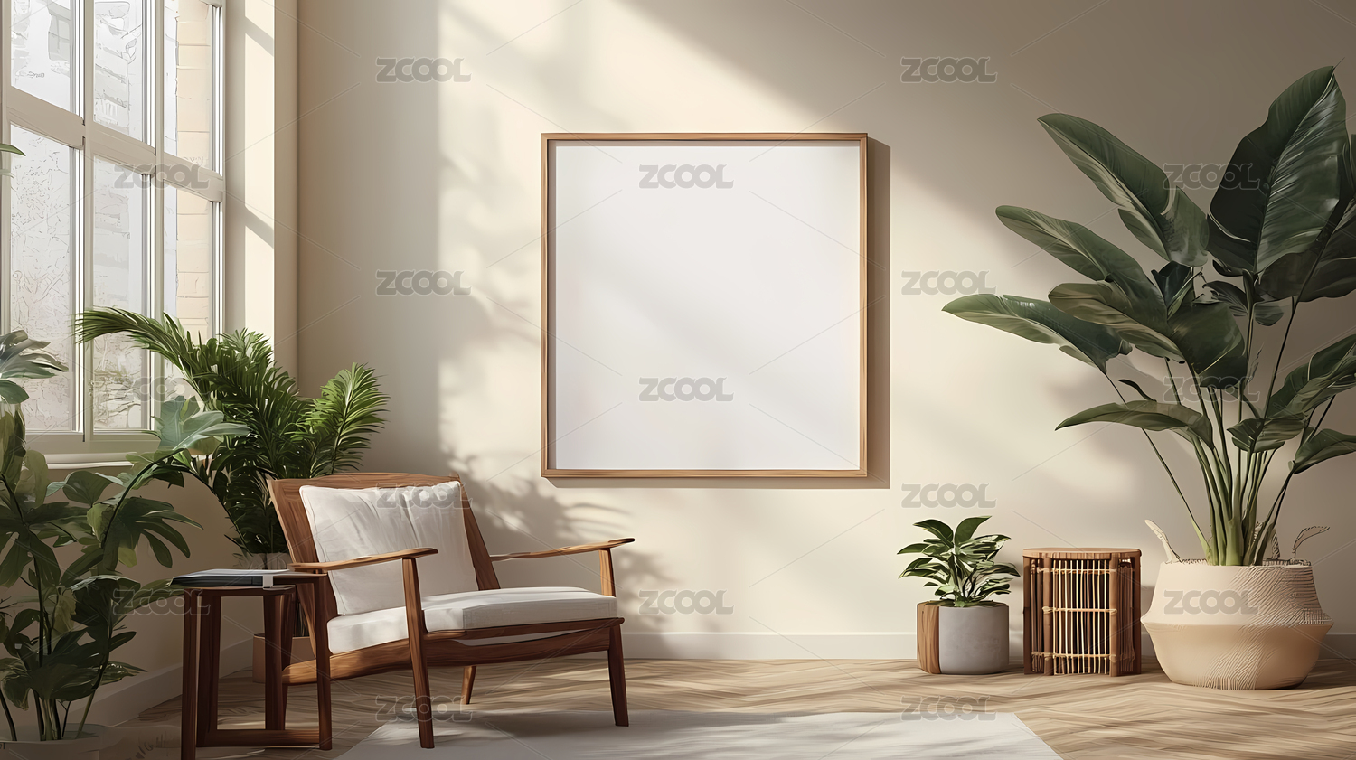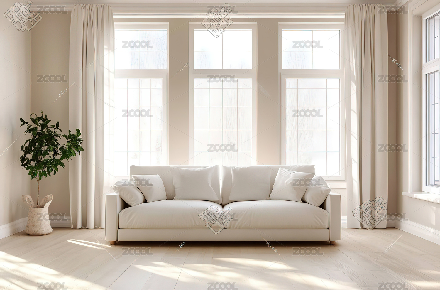 白柜绿植阳光角落场景