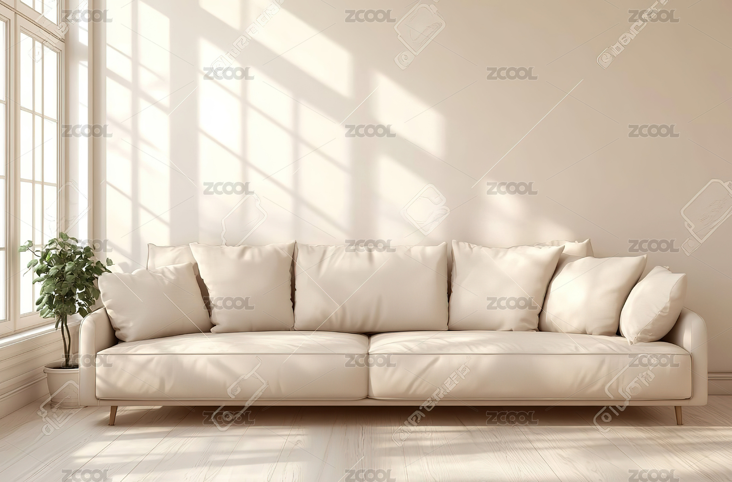 浅粉墙阳光绿植家具营造温馨室内场景