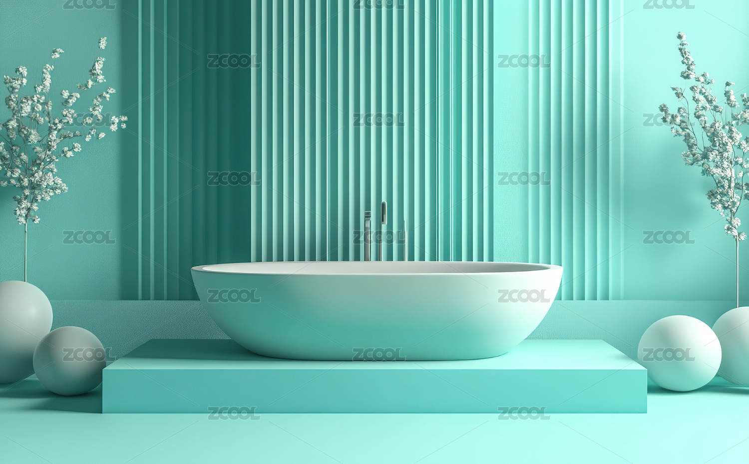 蓝色背景下的空浴缸
