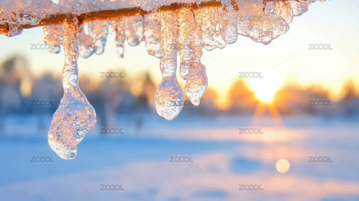 冬日夕阳下的冰凌