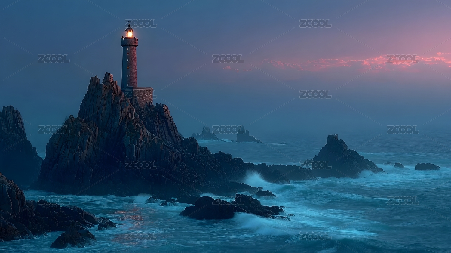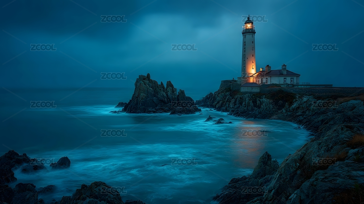 画面,自然,户外,夜晚,神秘,风景,夜幕,海浪,灯塔,海景