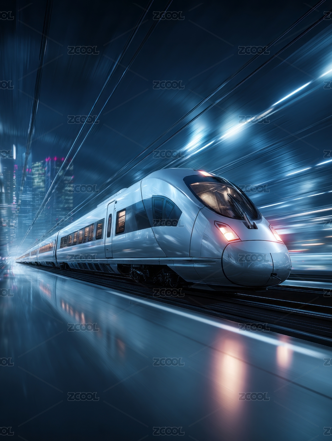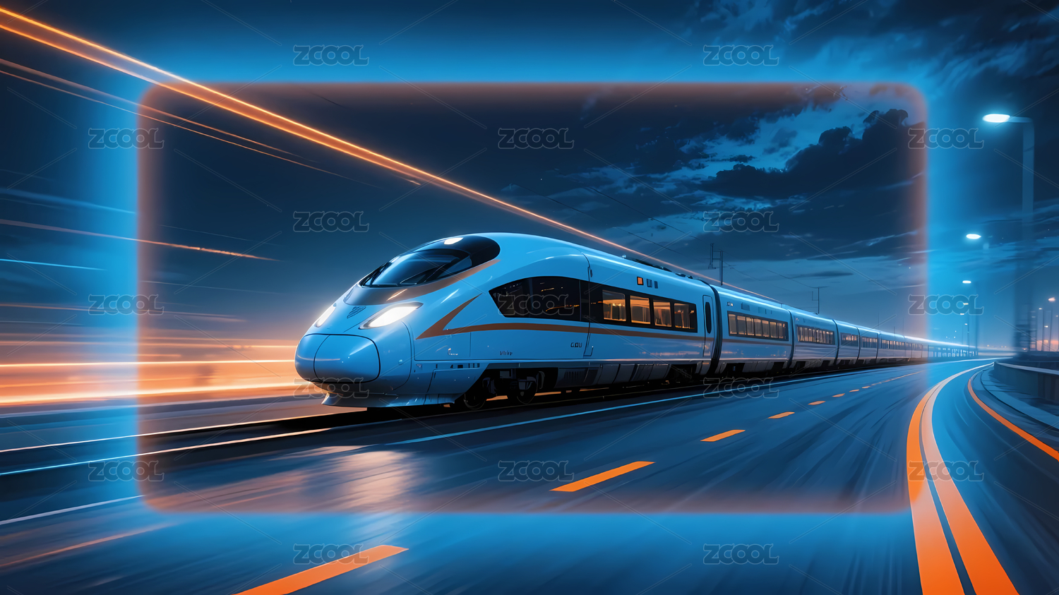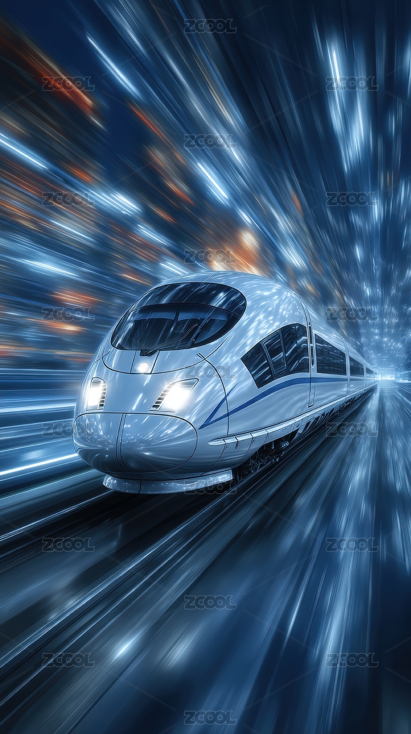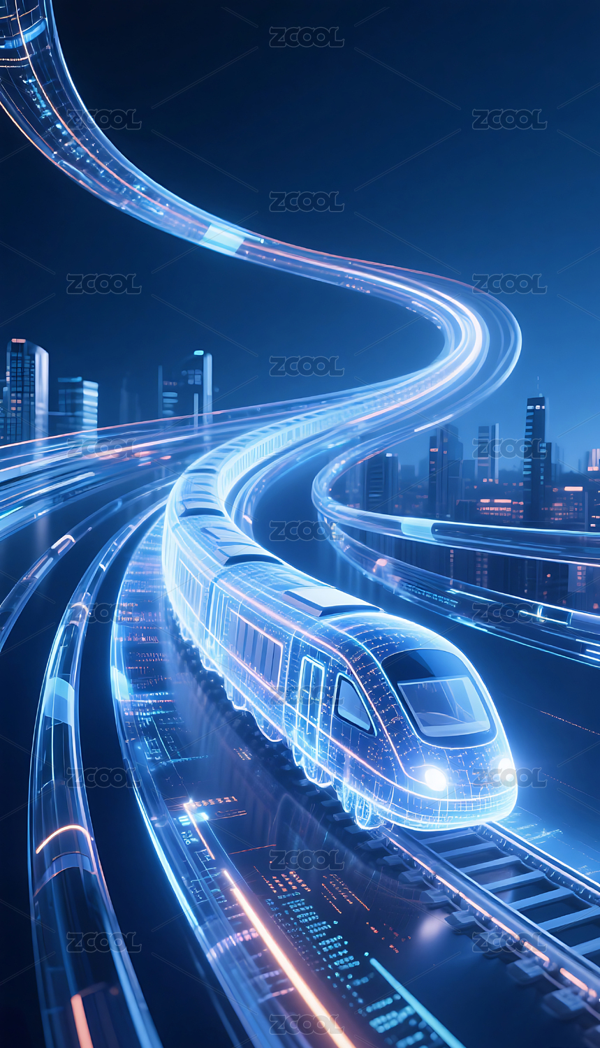 未来科技高速列车疾驰穿梭