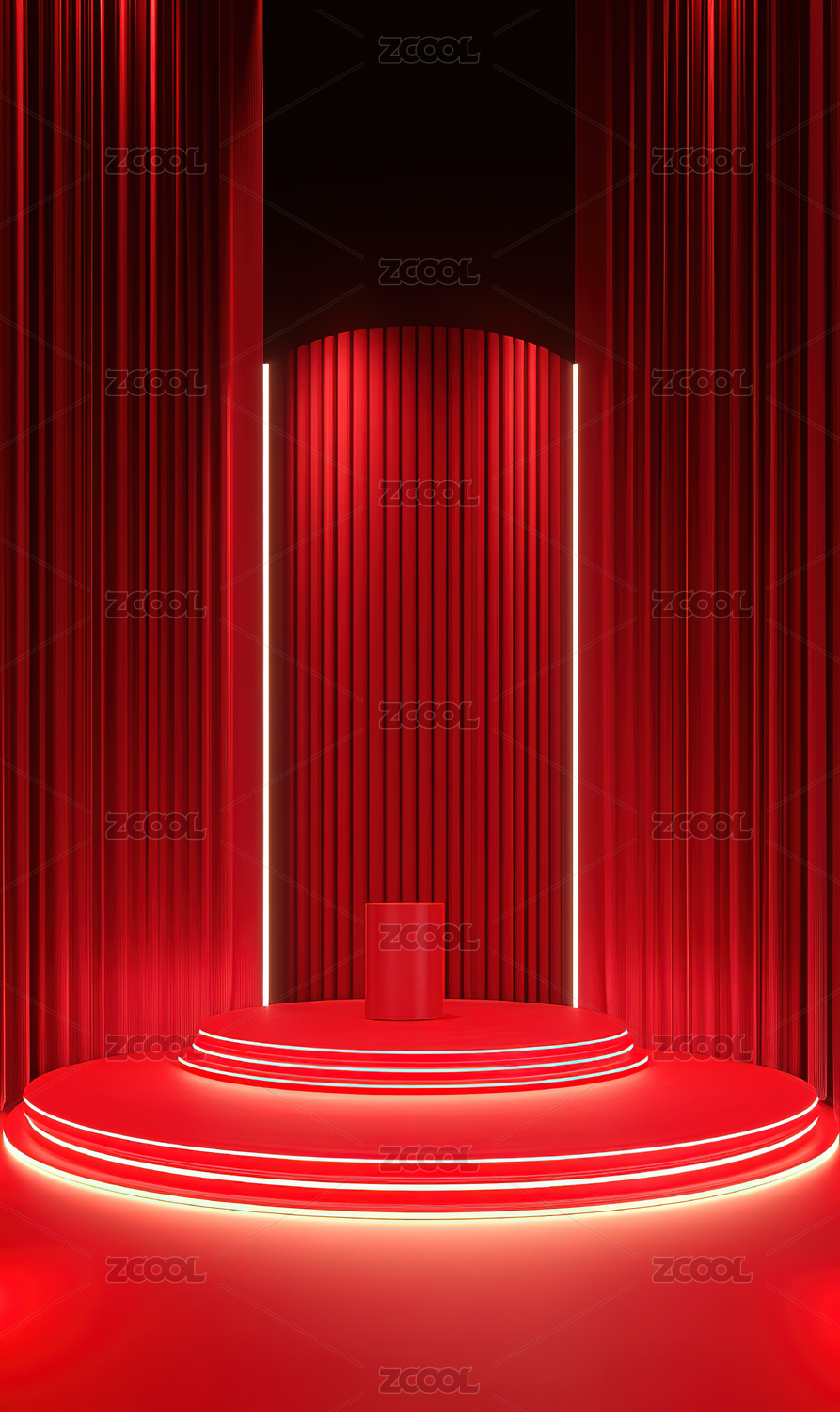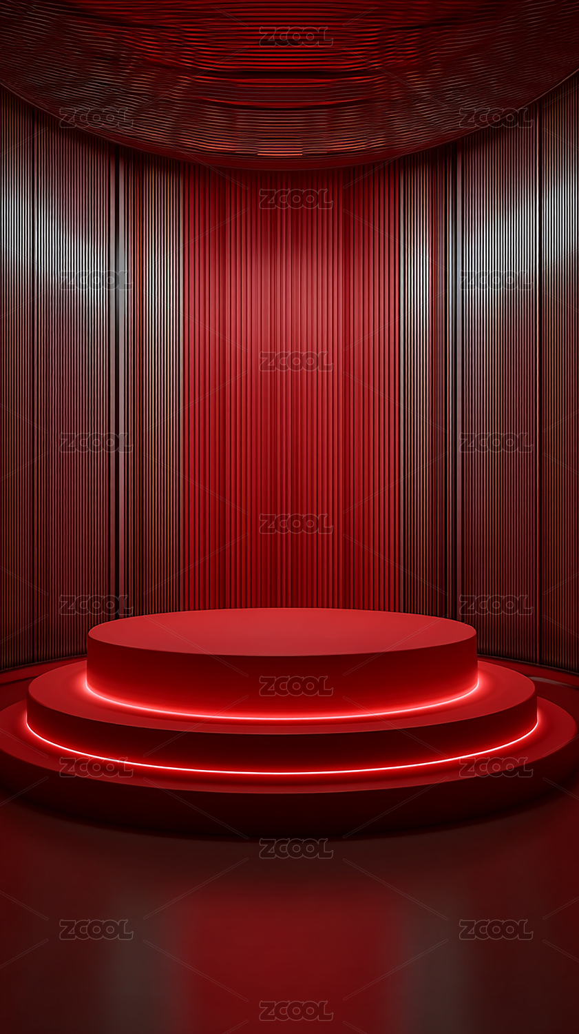 红色光效圆形展台科技场景