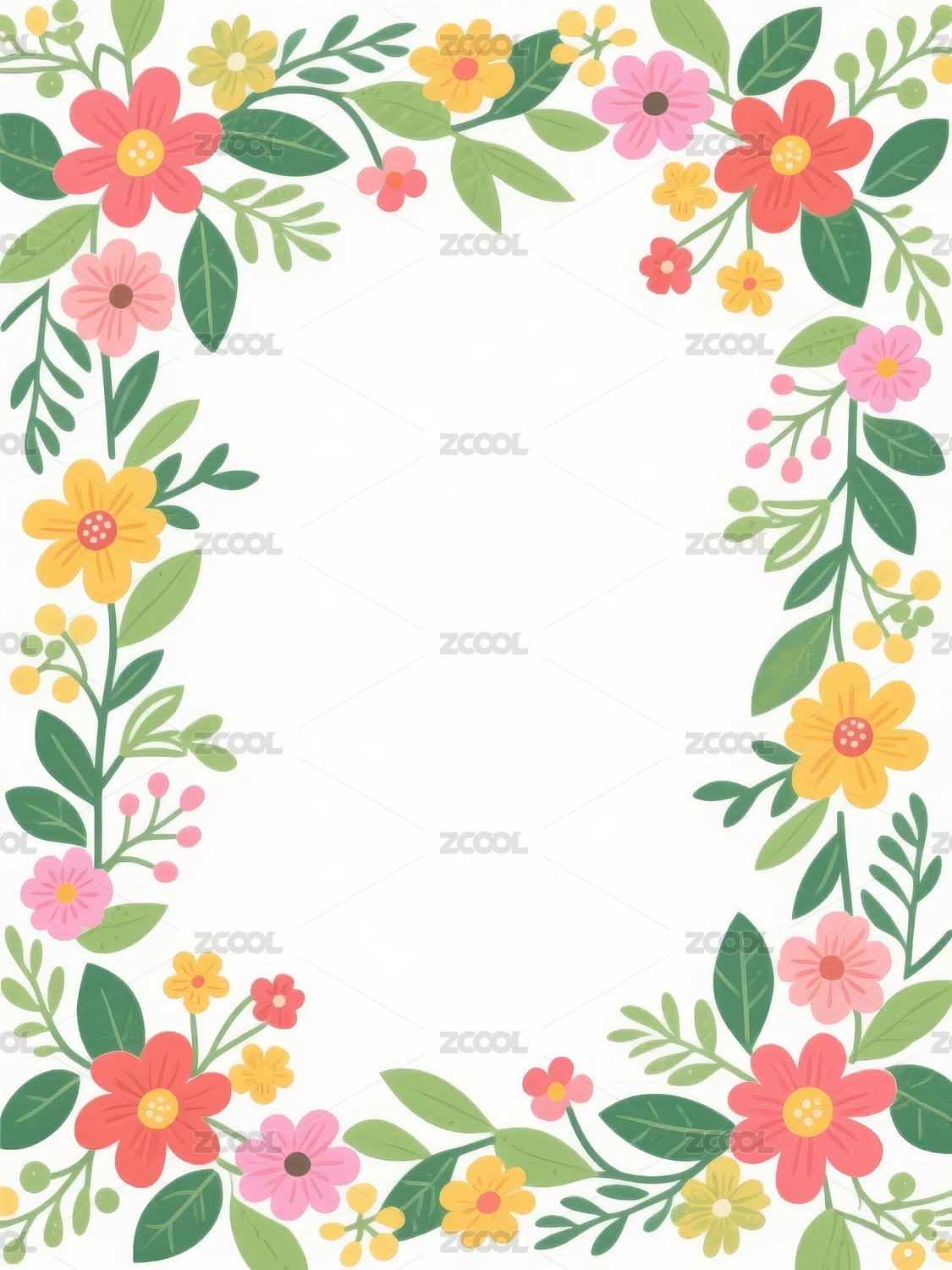 水彩画,水彩,卡通,花,留白,植物,自然,绿色,叶子,边框