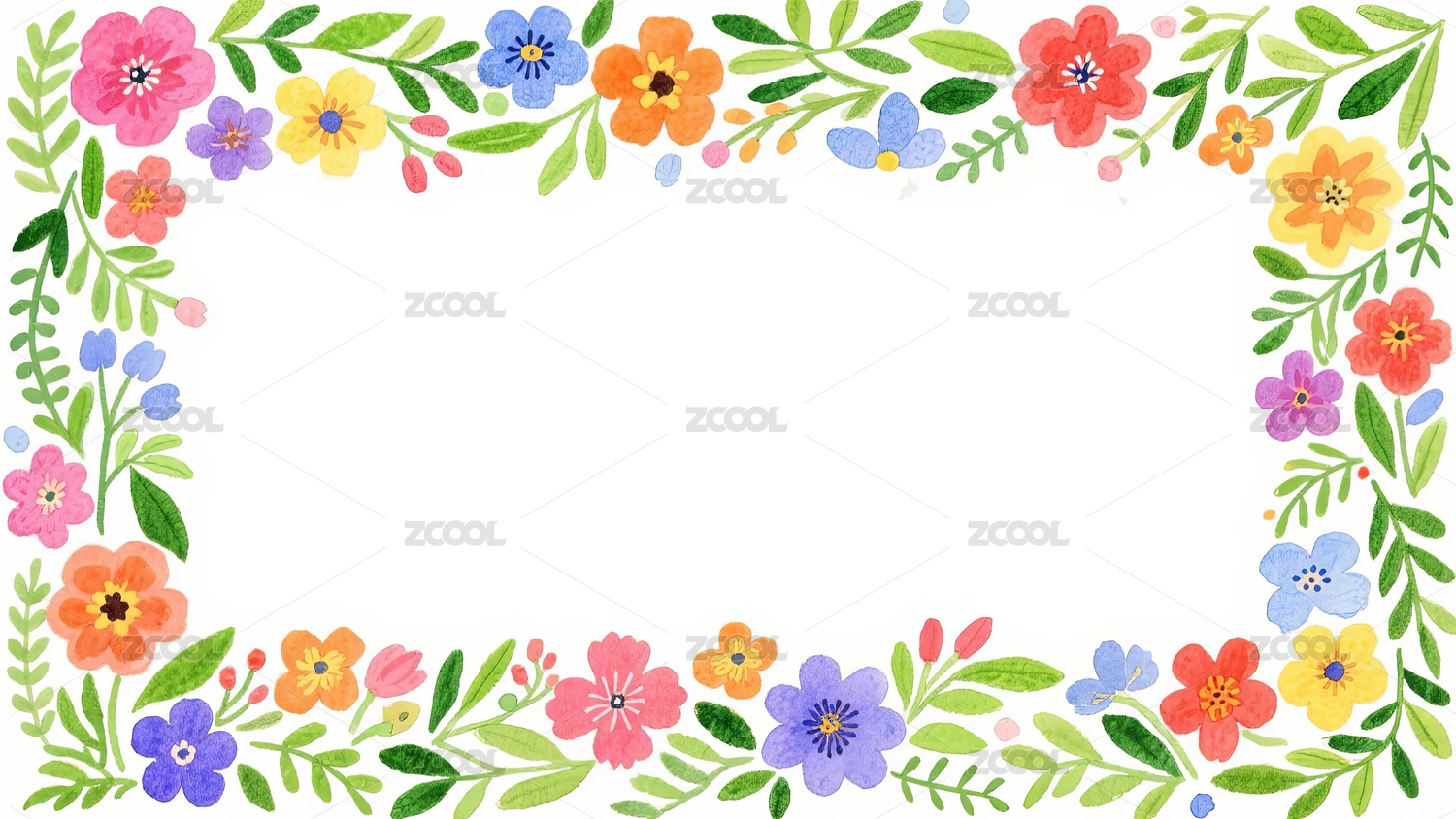 水彩鲜花绿植边框背景