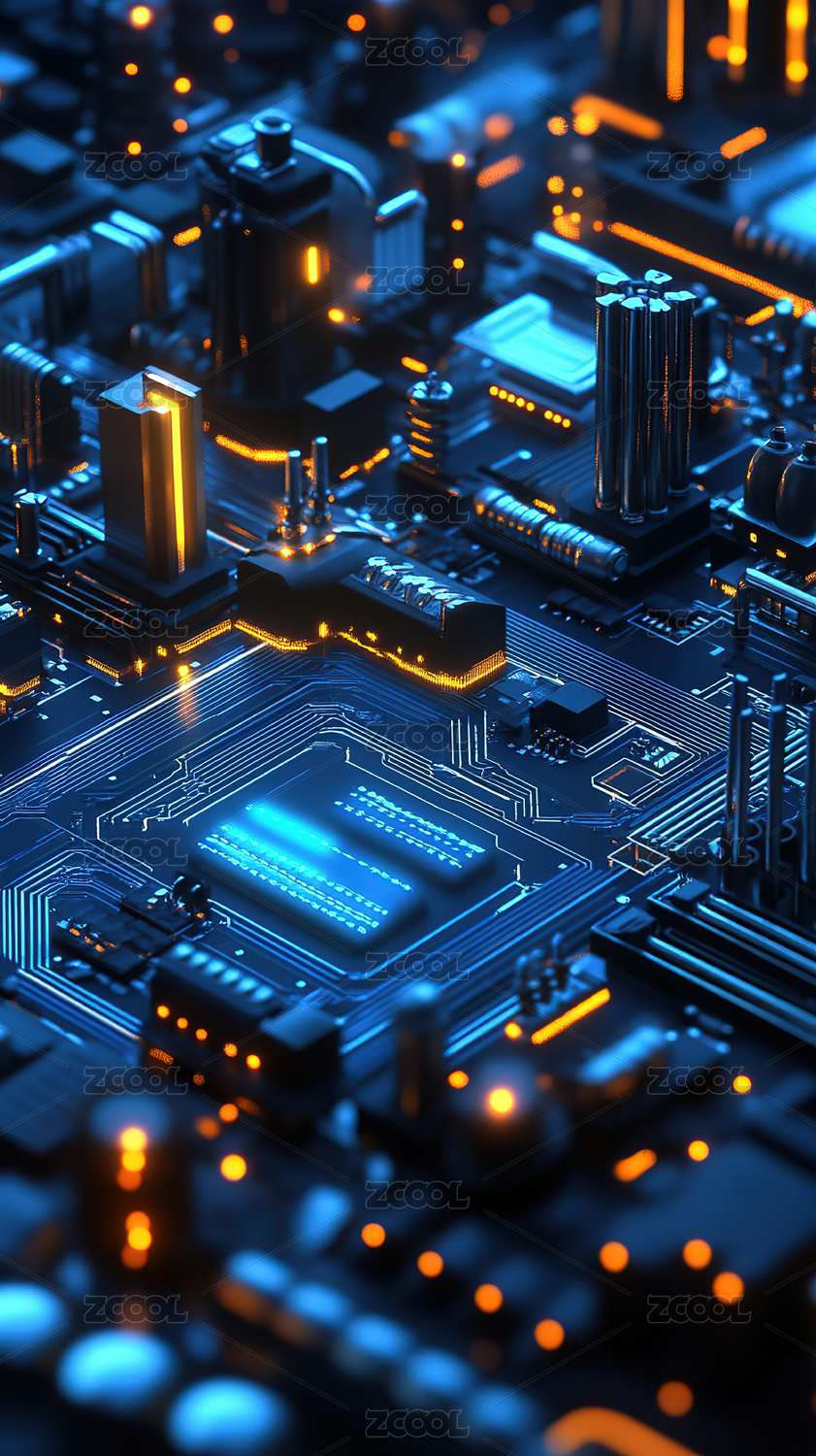 芯片金融科技赛博朋克人工智能三维渲染电路