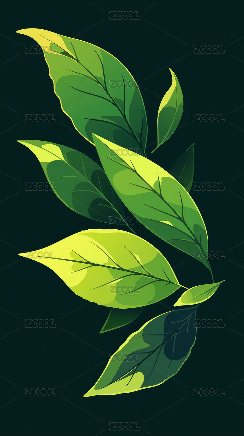 手绘卡通漂亮的绿色的树叶元素插画素材