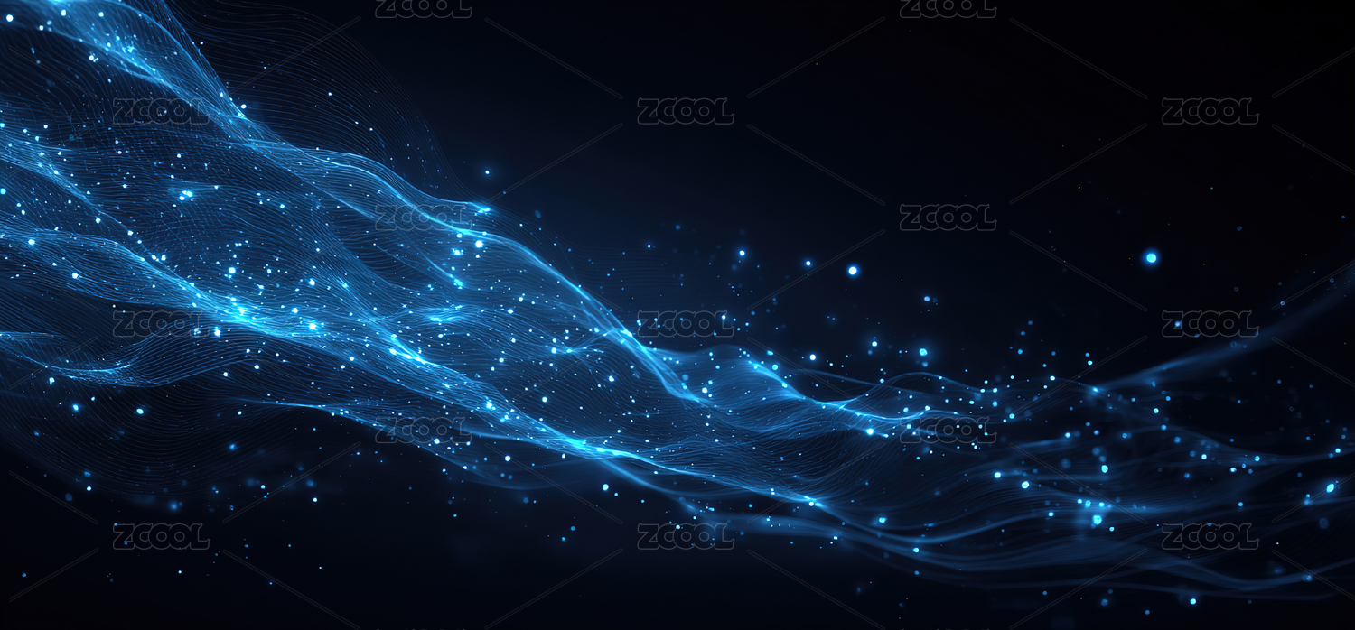 蓝色光波与星点交织的抽象空间