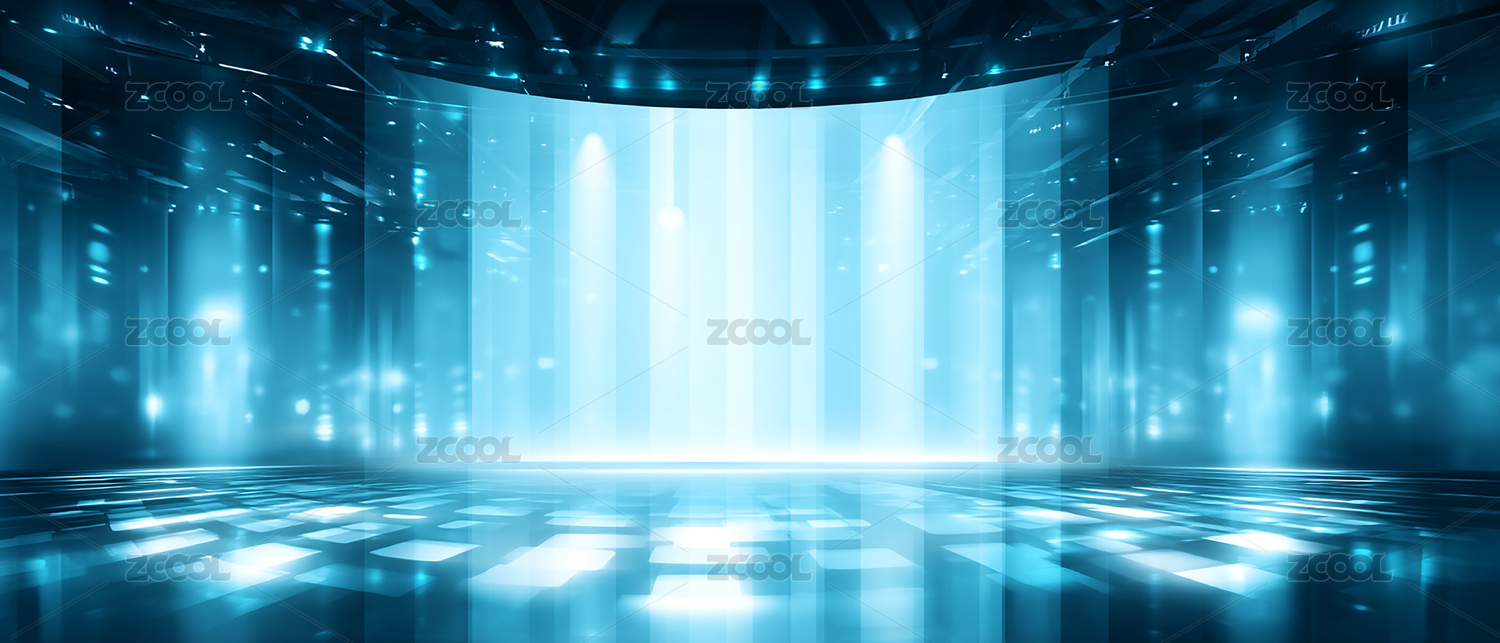 蓝色光束照亮的科技舞台