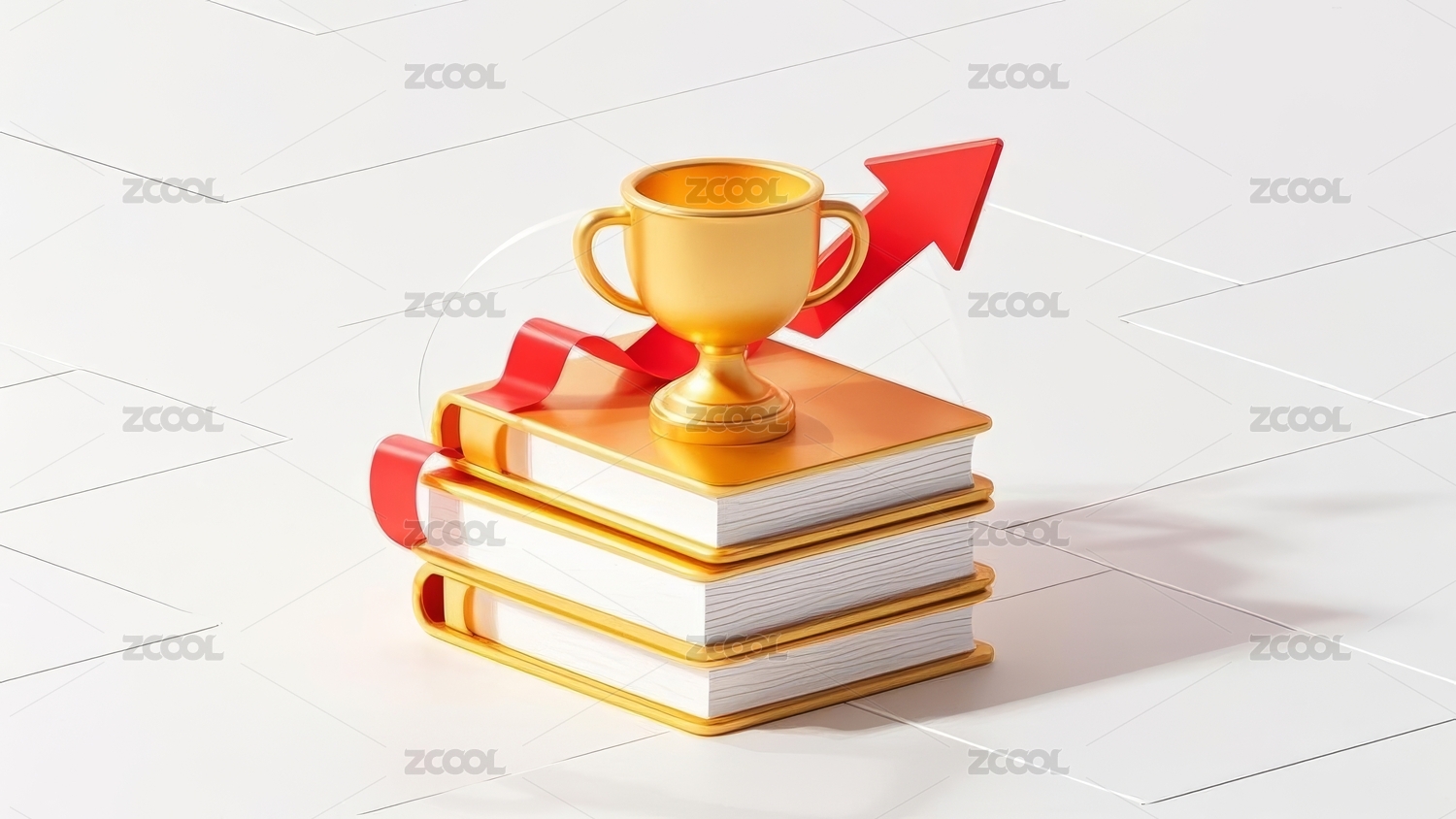 主视觉,场景,金色,书本,上升,箭头,荣誉,奖杯,知识,进步