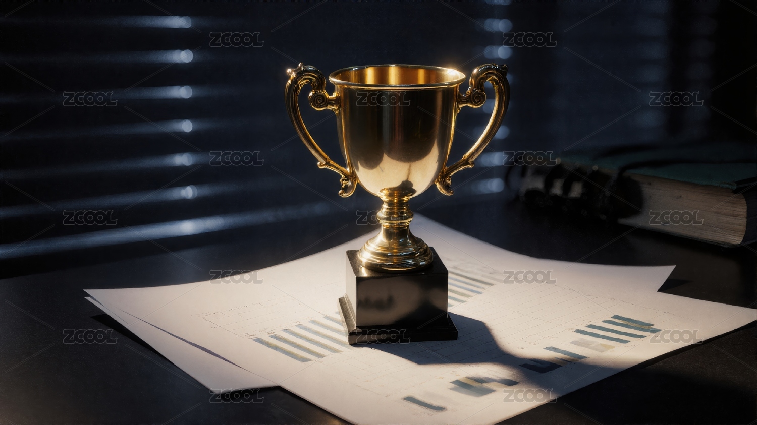 深蓝背景的金色奖杯