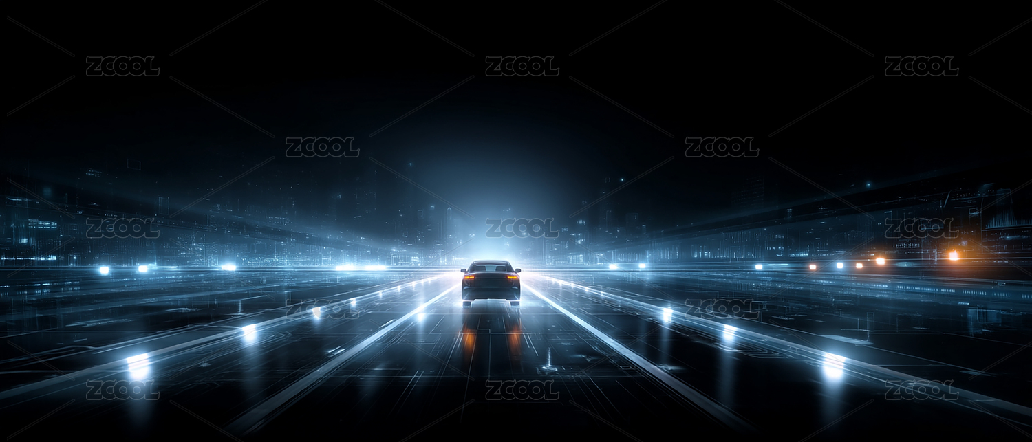 未来城市中自动驾驶汽车高速行驶的科技场景