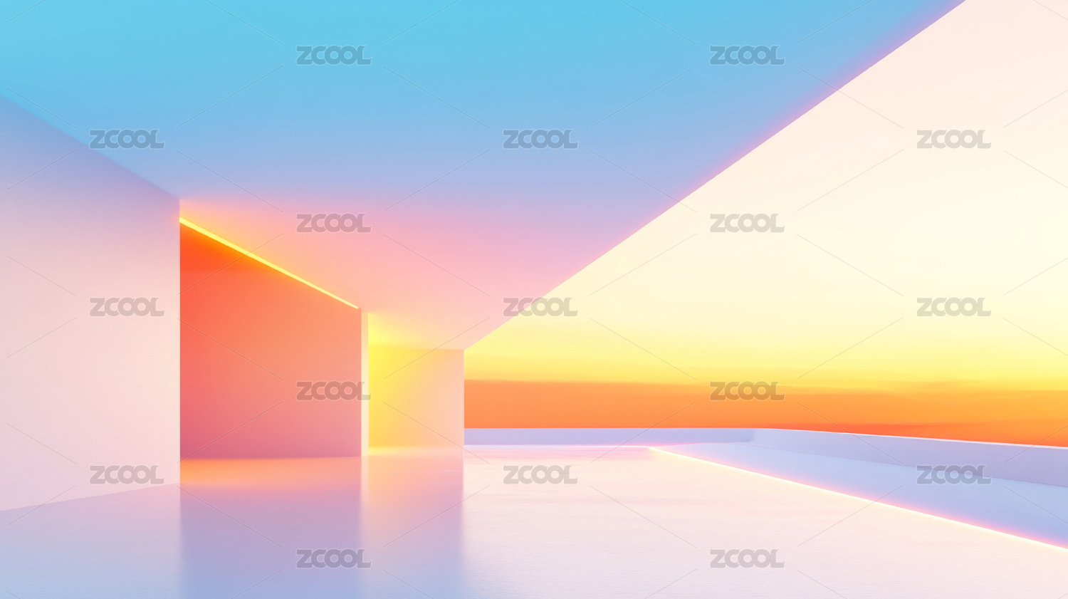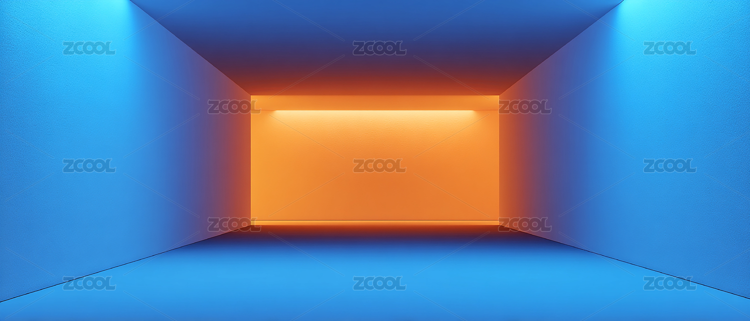 数码渐变蓝橘白色玻璃几何横版海报背景