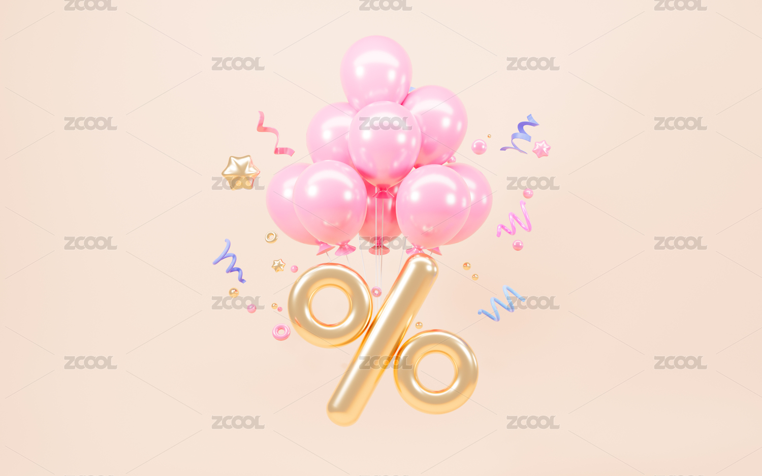 主视觉,粉色,百分号,立体,展示,场景,数字,符号,装饰,元素