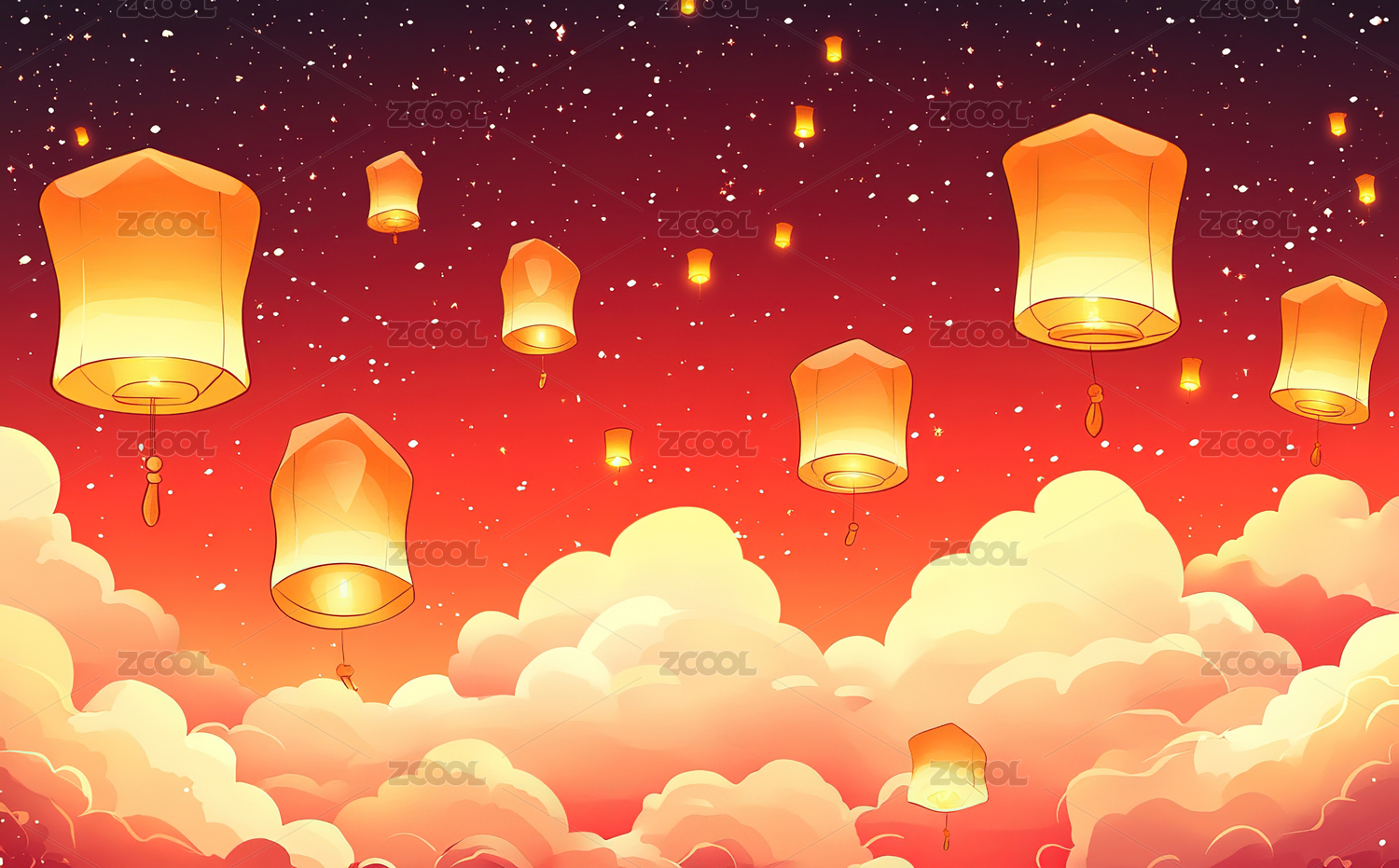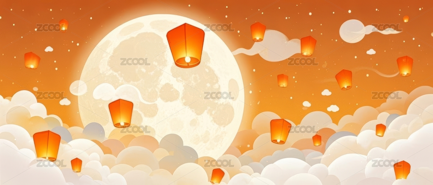 主视觉,月夜,孔明灯,创意,场景,月亮,云朵,艺术,设计,素材