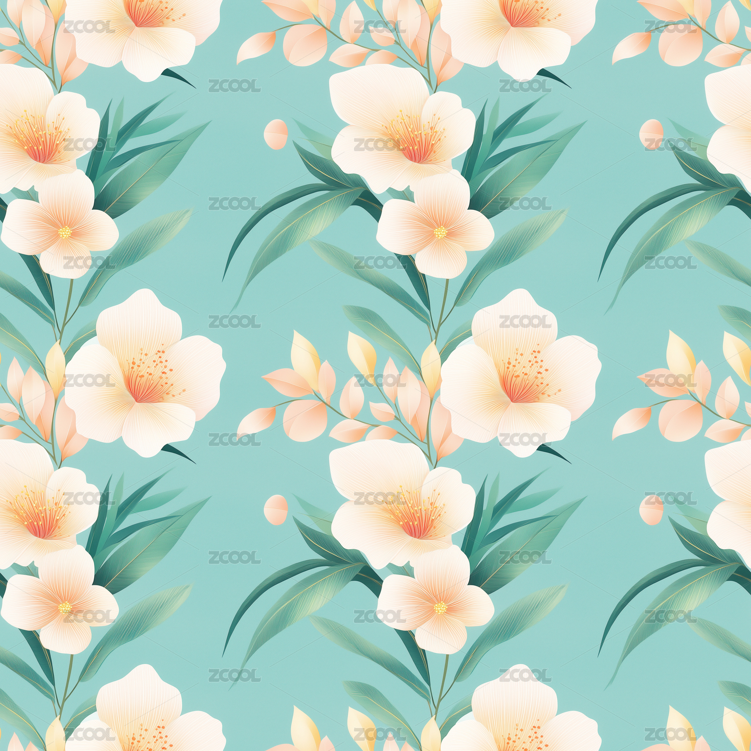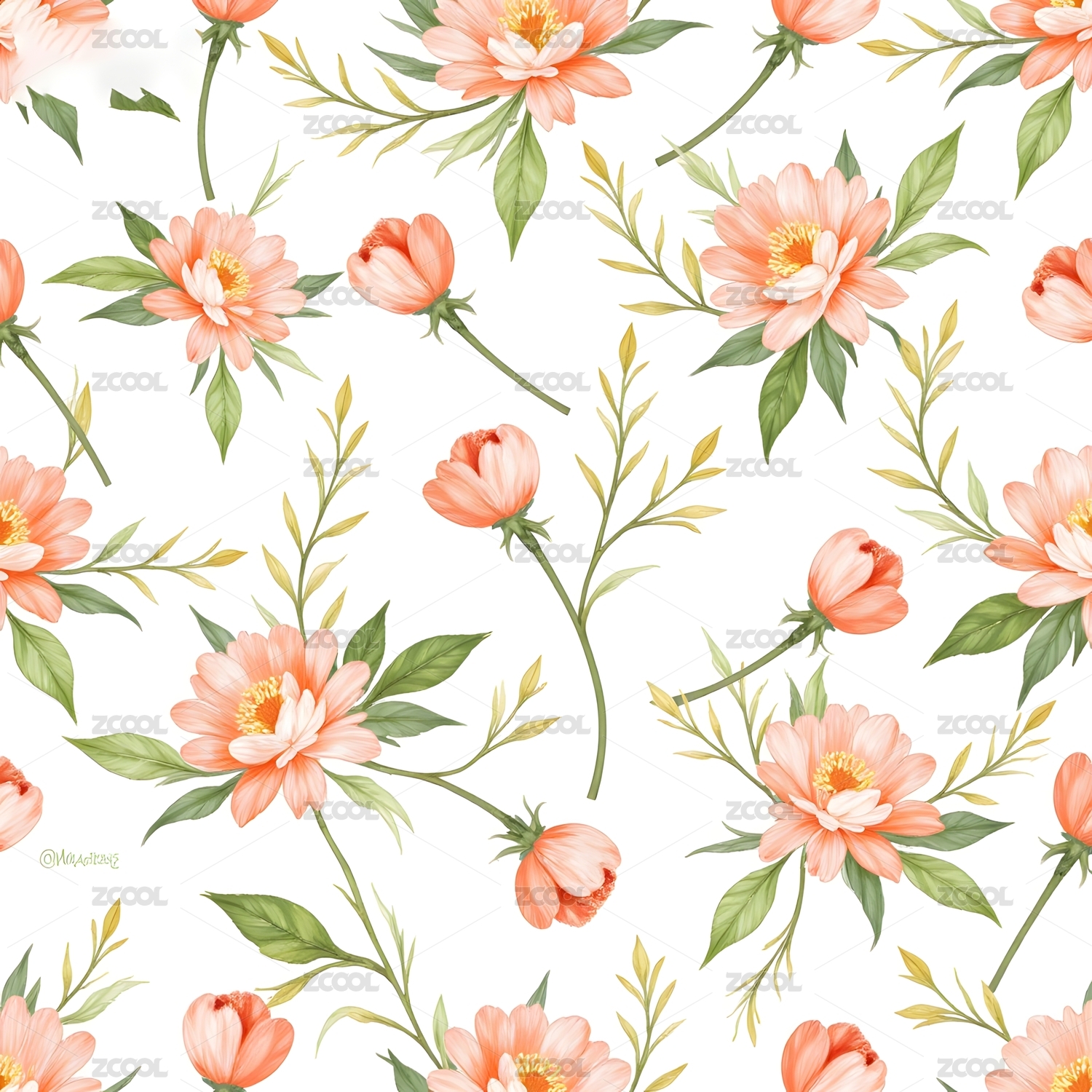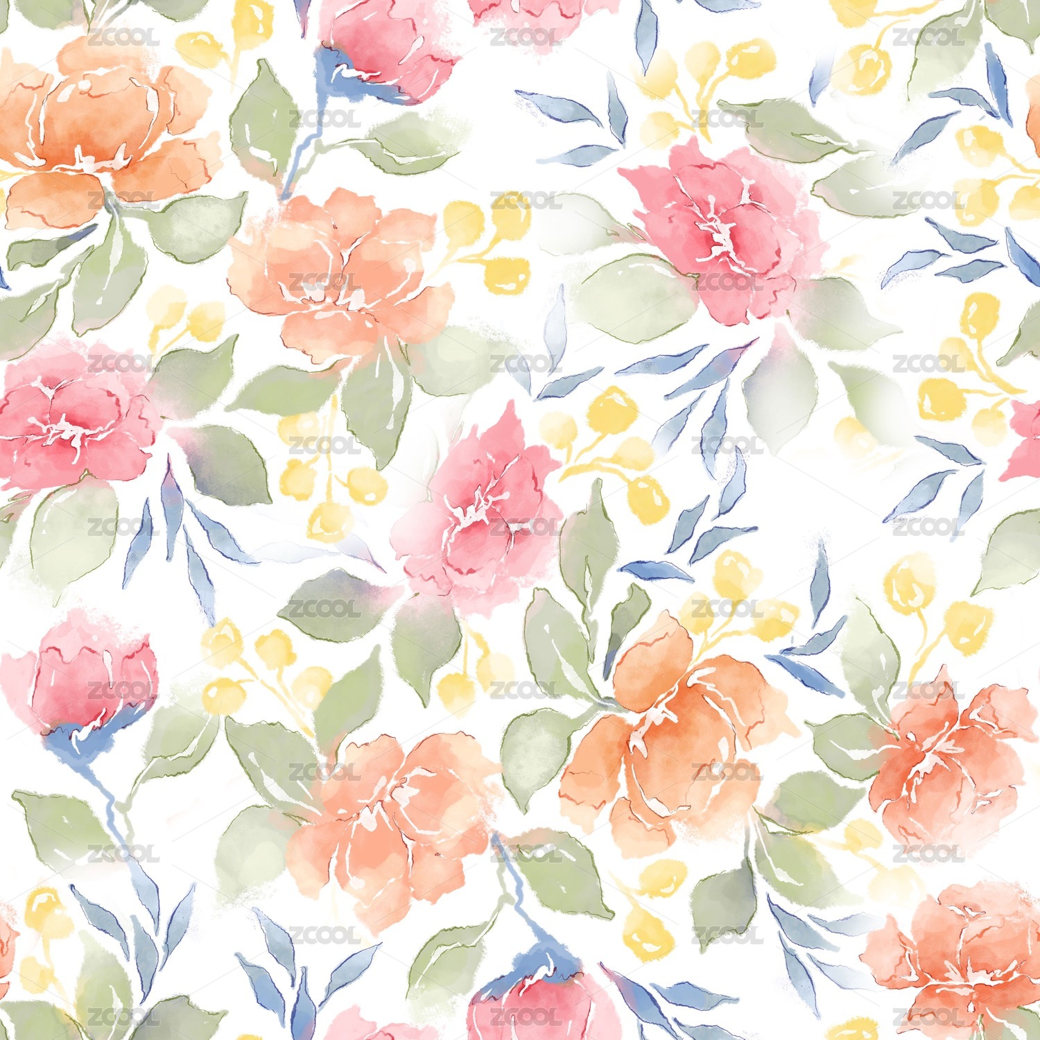 水彩花卉四方连续无缝图案