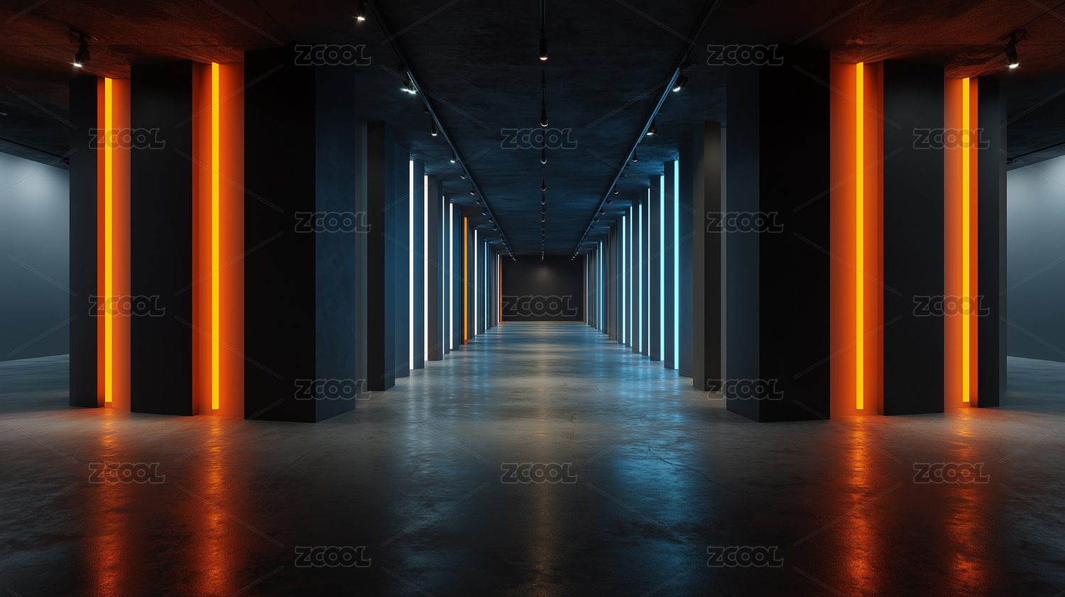 未来感走廊灯光反射