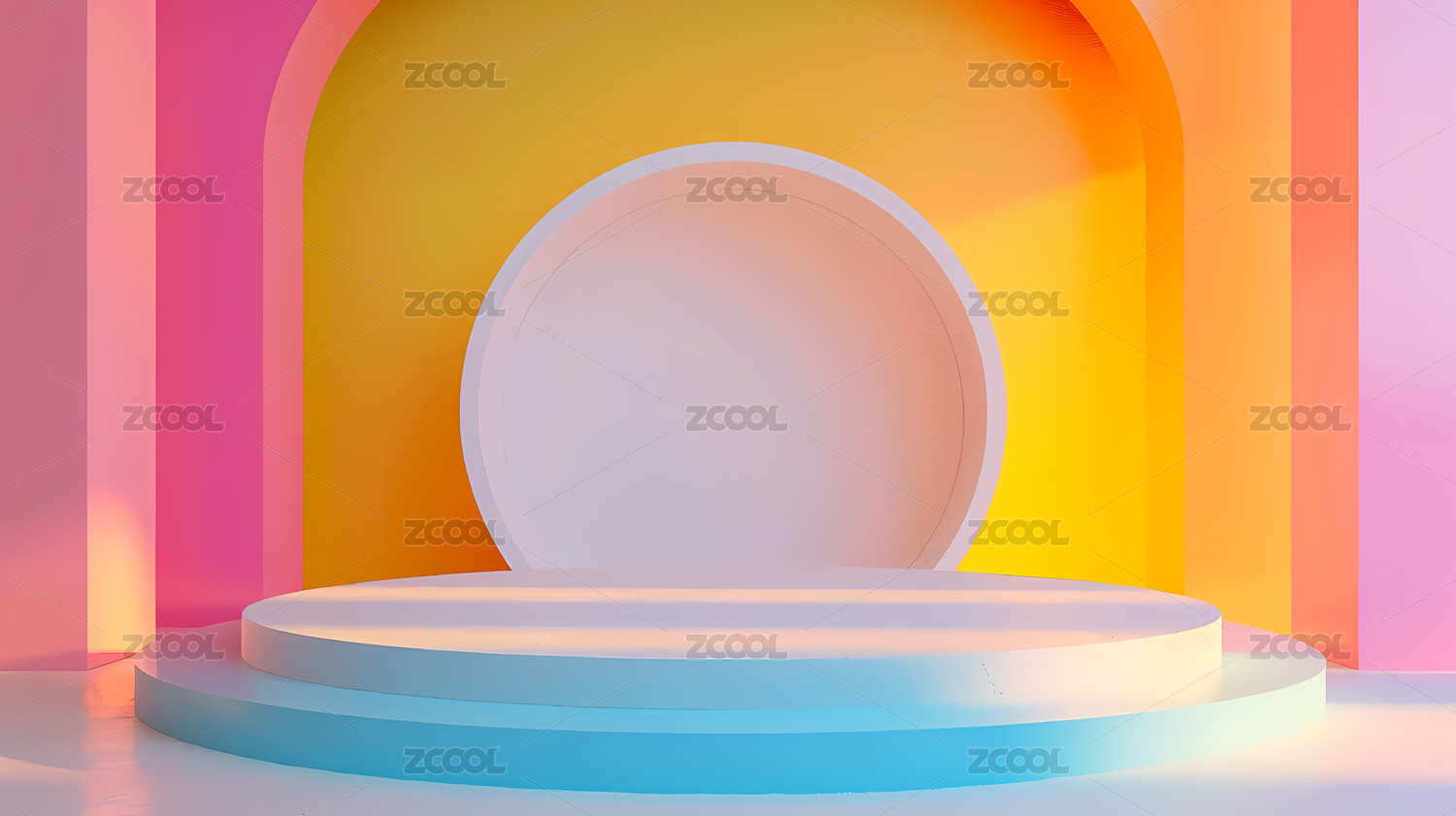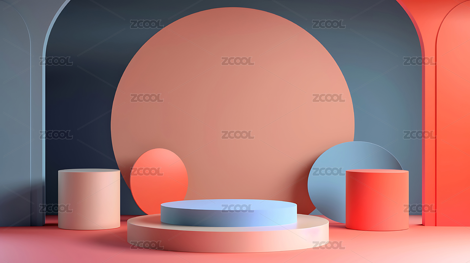 简约几何色块与圆形平台的抽象组合