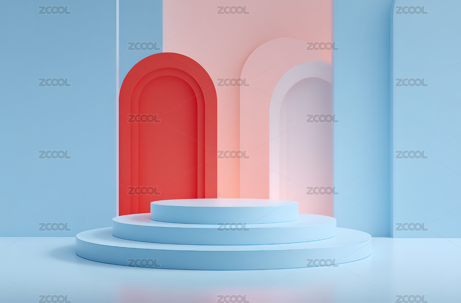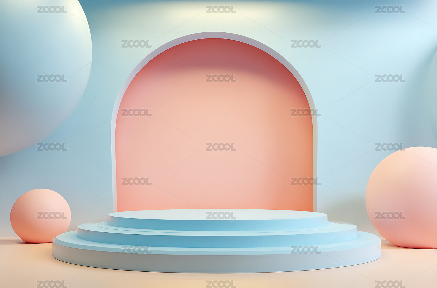 柔和色调的几何舞台场景
