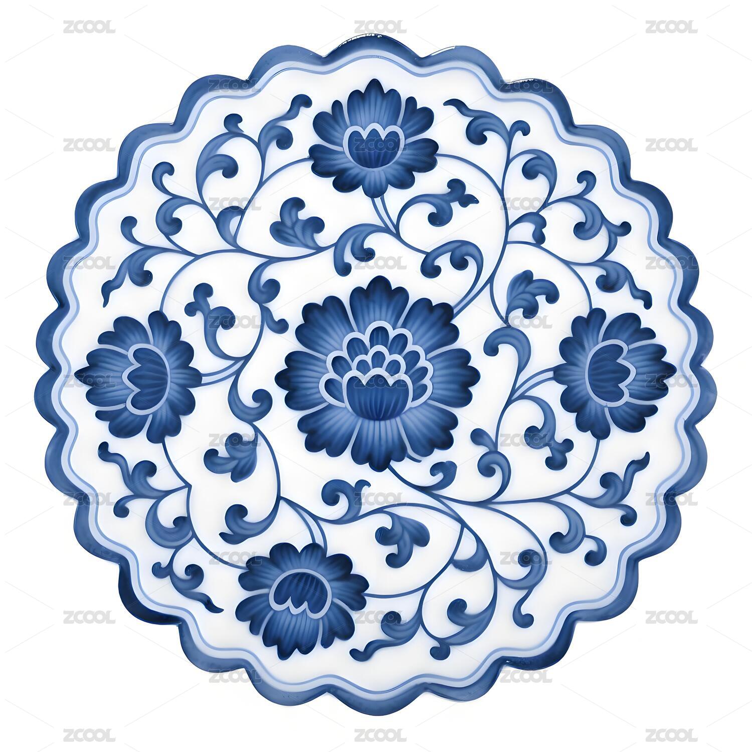 圆形青花缠枝莲瓷古风传统花纹饰边纹样