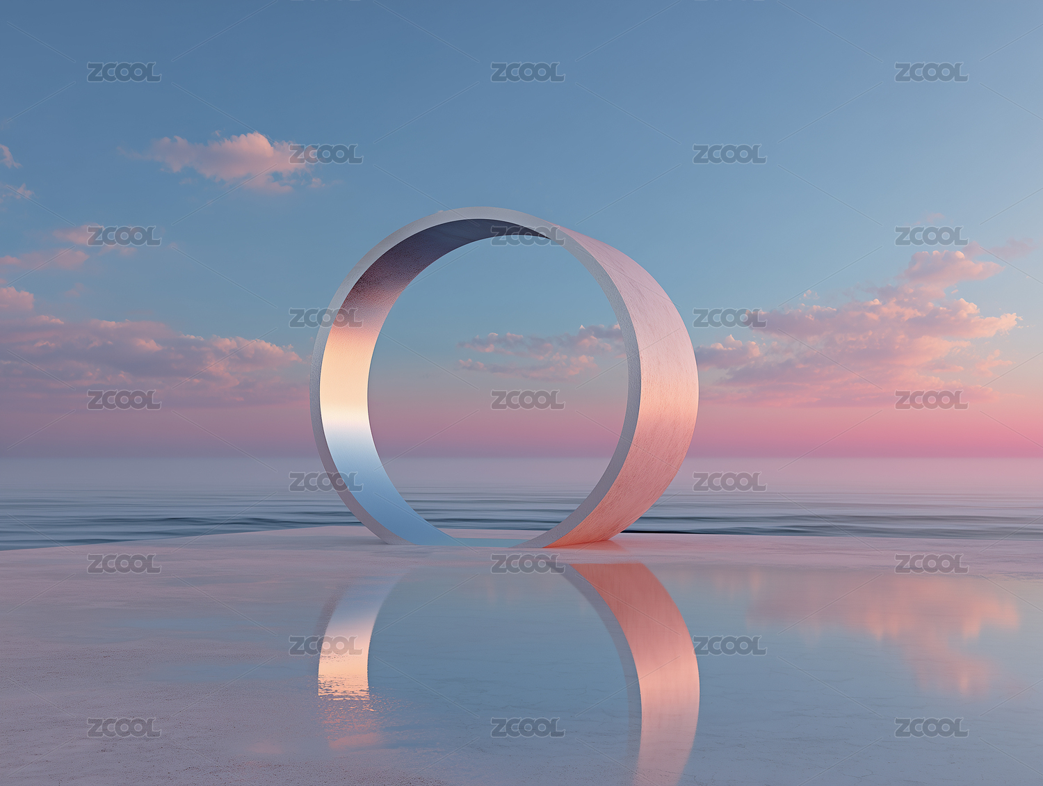铬环,悬浮,边缘,发光,云海,日出,天空,科幻,氛围,金属