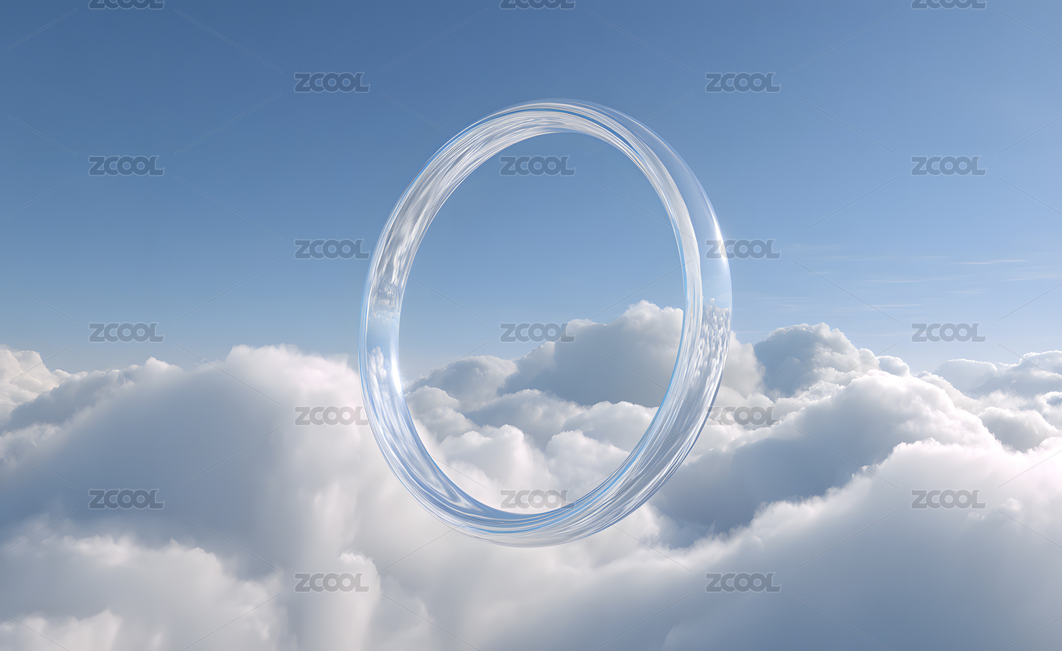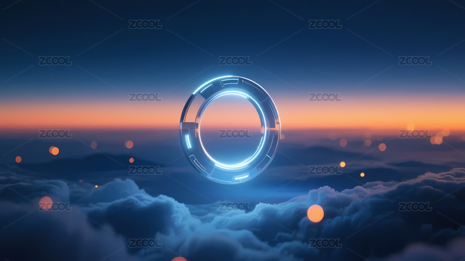 铬环,悬浮,边缘,发光,云海,日出,天空,科幻,氛围,金属