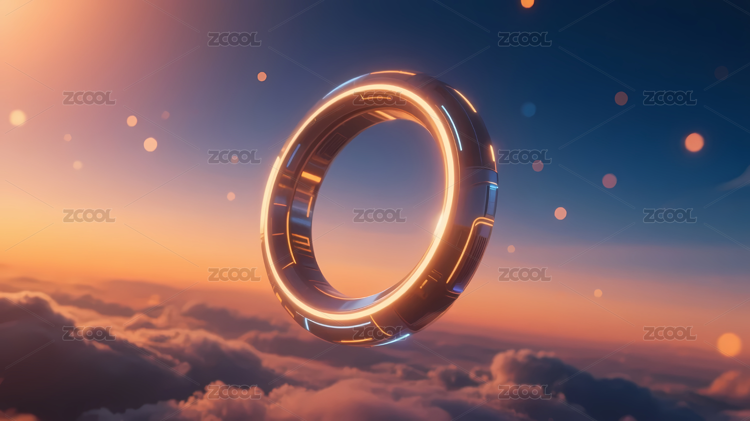 悬浮金属环蓝橙天空云海