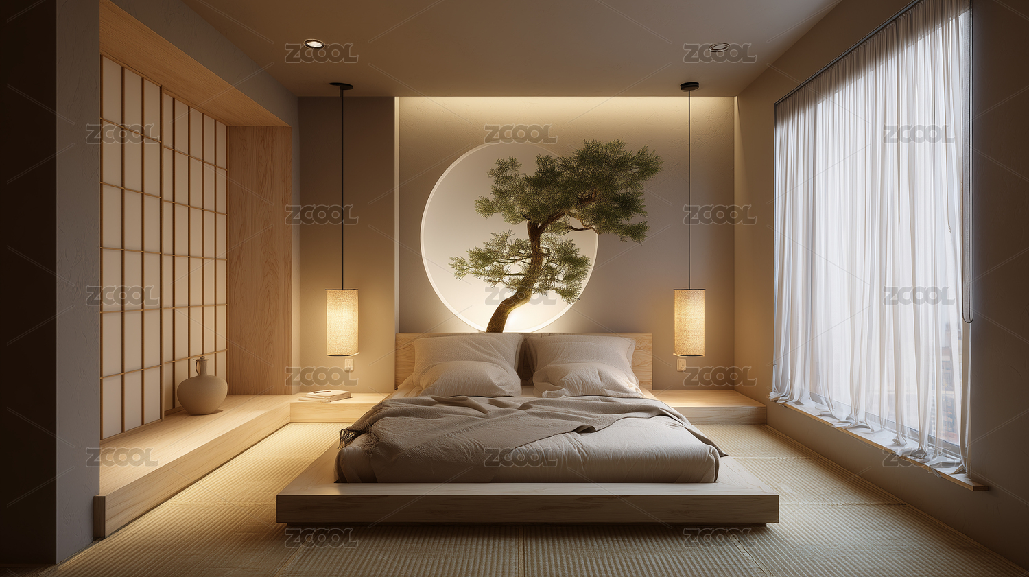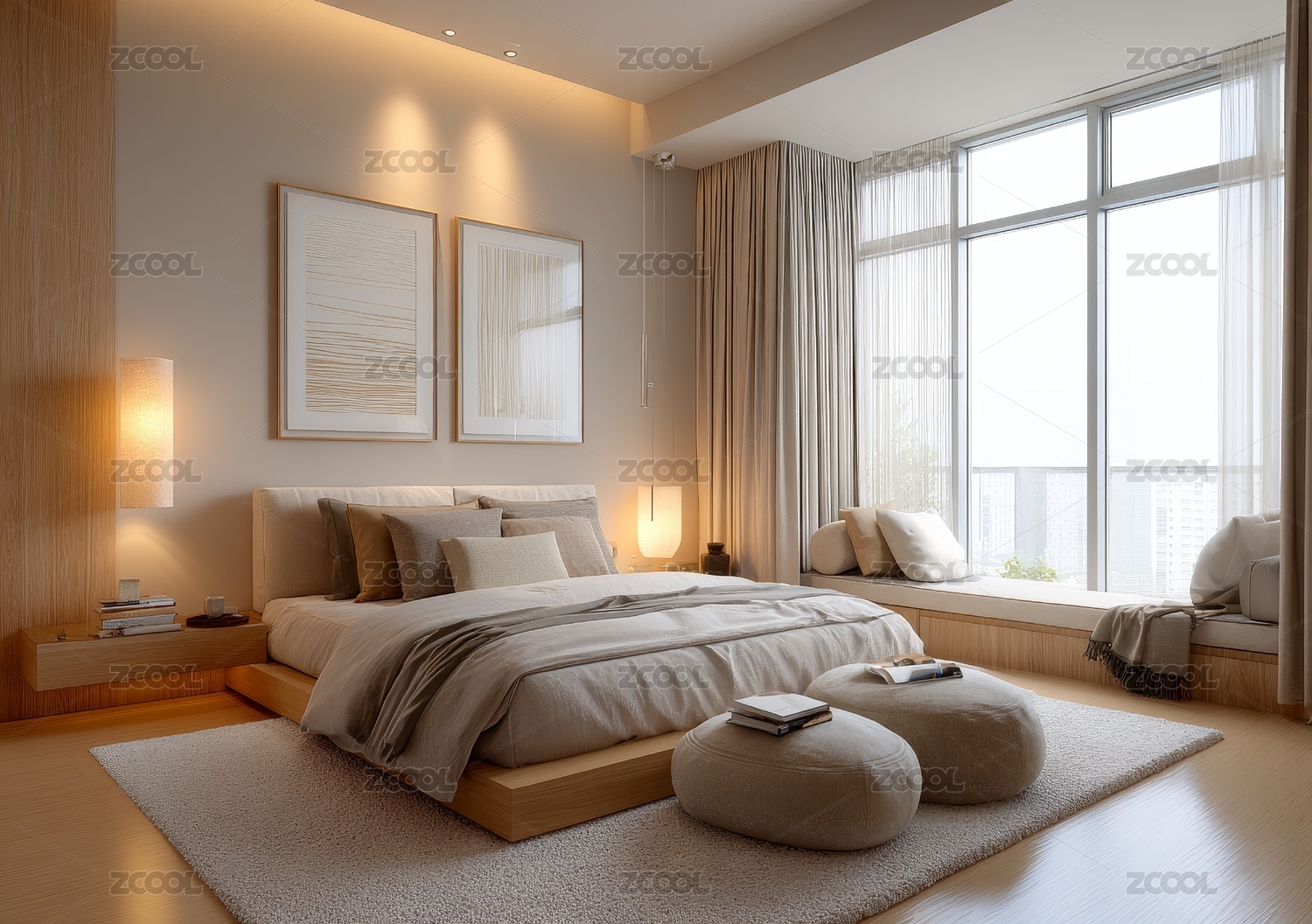卧室,日式,极简,原木,色调,平台,床铺,床品,色彩,中性