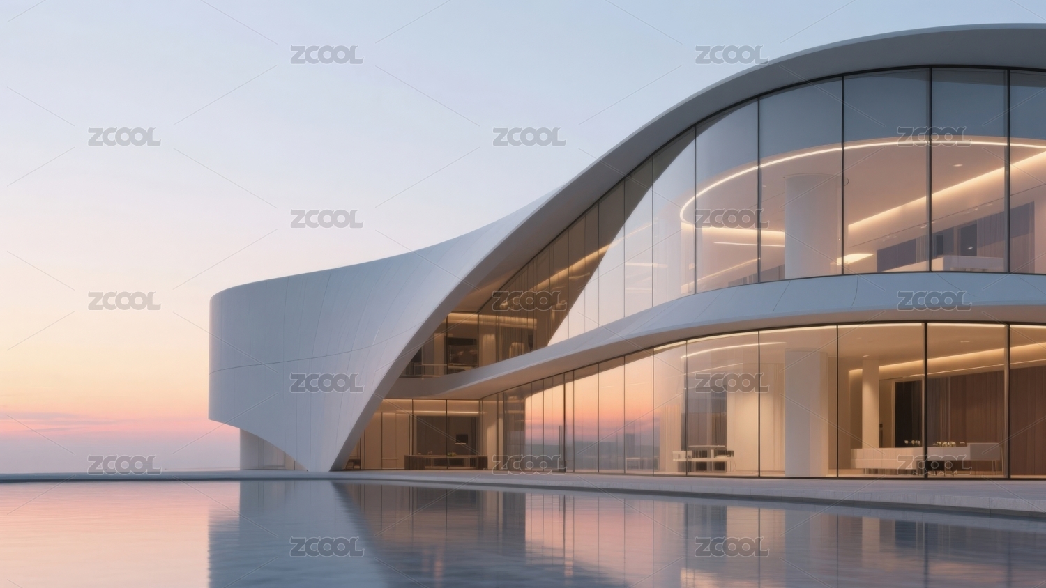建筑,白色,雕塑,线条,有机,海洋,地平线,日落,光线,露台