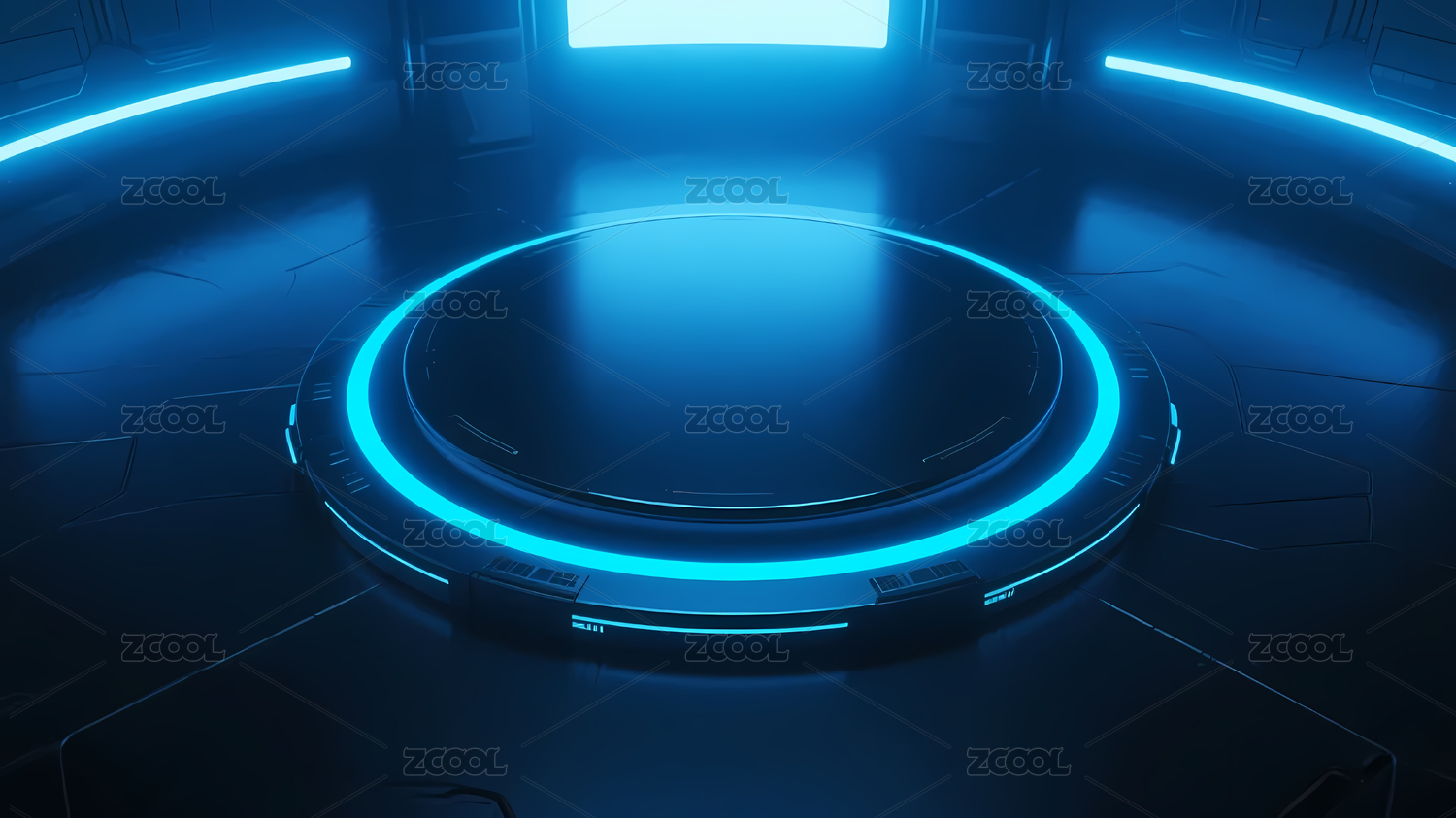 黄色,深色,背景,蓝色,未来,科技,霓虹,平台,圆形,环绕