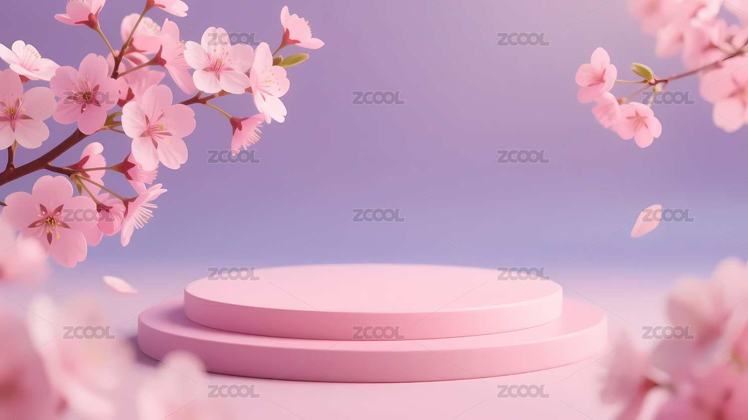 圆形,背景,讲台,粉色,粉紫,渐变,樱花,装饰,浪漫,宁静