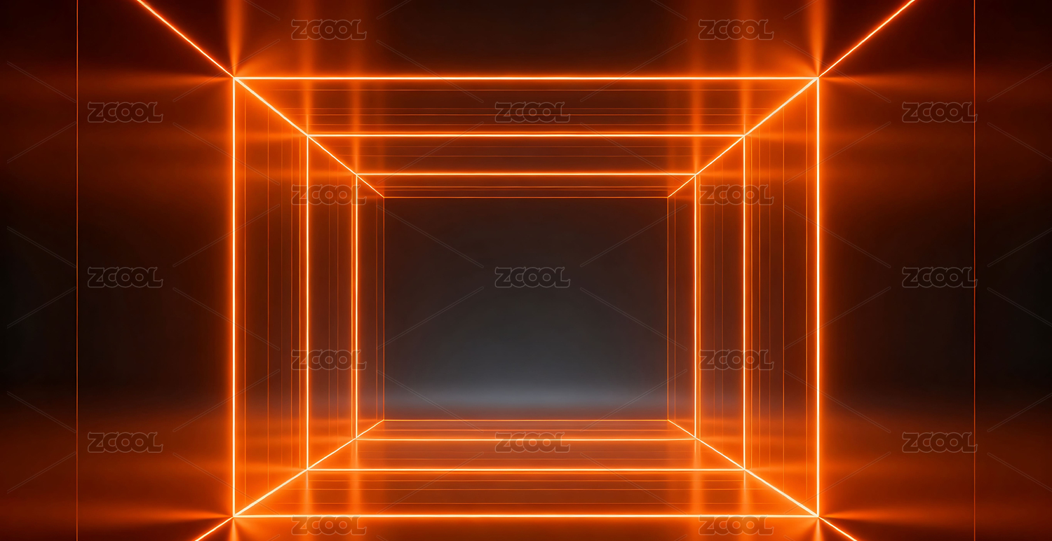 橙红霓虹无限方形隧道