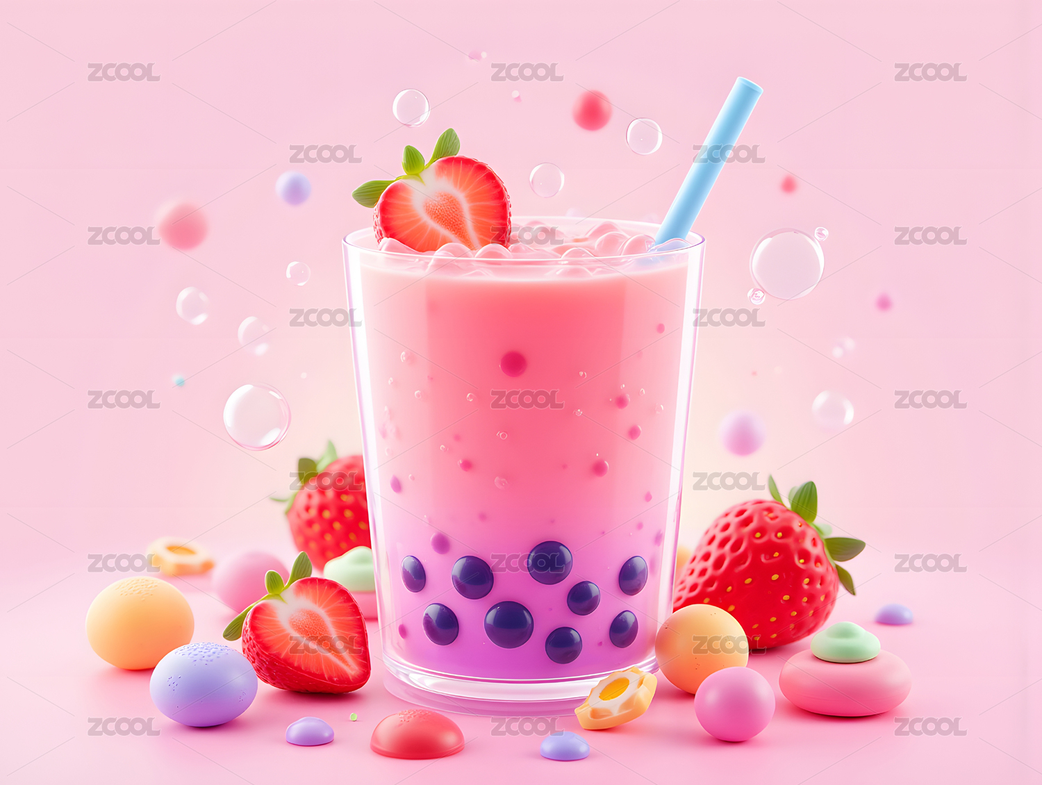 创意珍珠奶茶冰饮夏季美味饮品素材