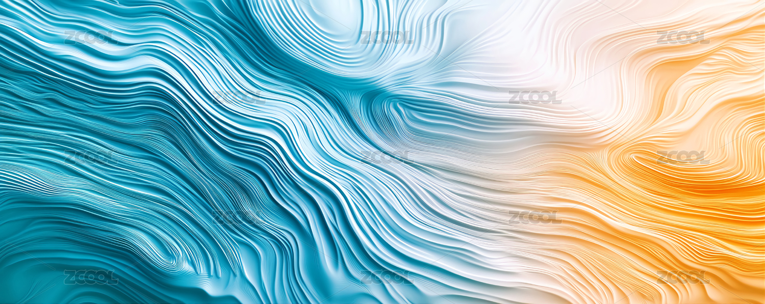 抽象,波纹线,流体,海浪,渐变,光影,弯曲,蓝色,黄色,3D