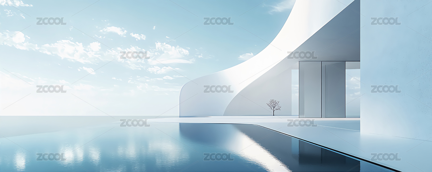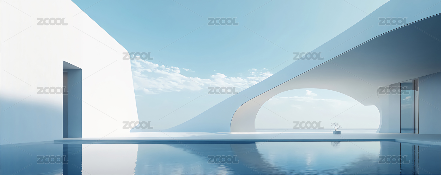 极简,滨水,建筑,场景,背景,酒店,艺术,白昼,光影,蓝天