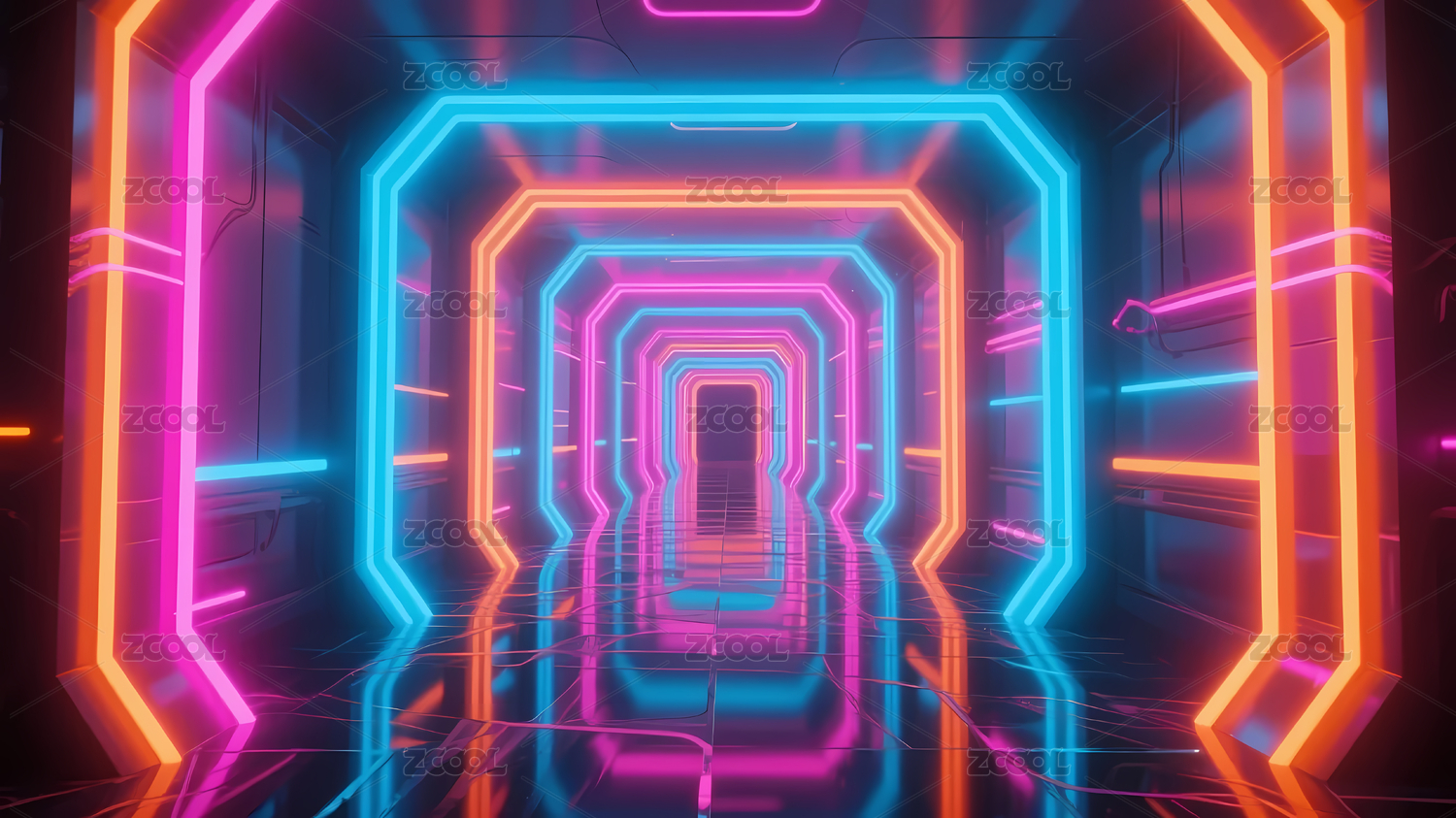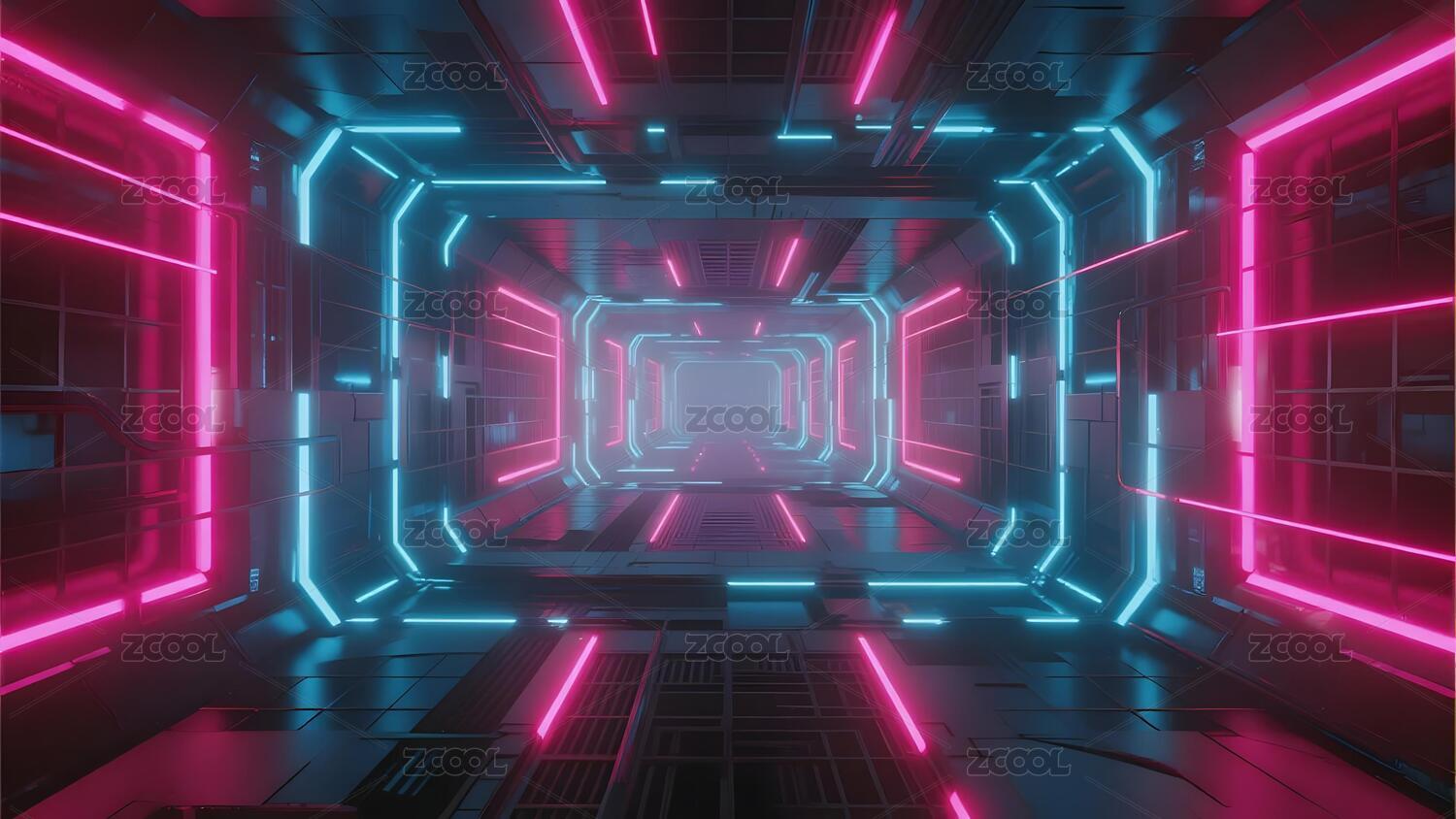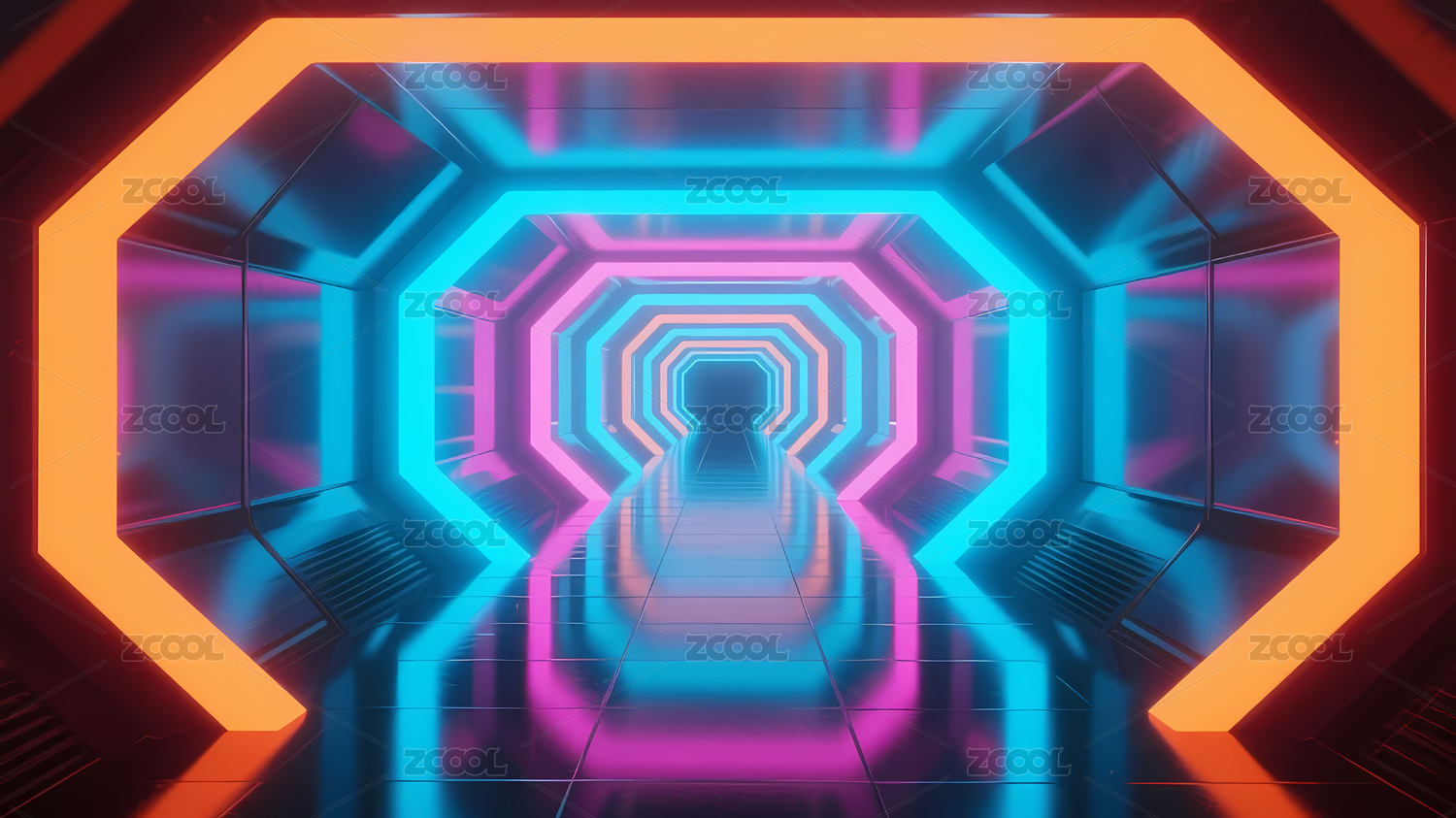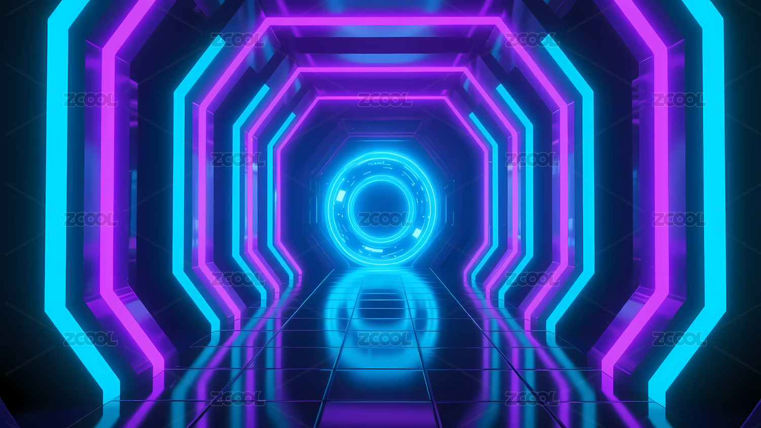 隧道,灯光,蓝色,六边形,几何,科幻,未来,科技,光效,反射