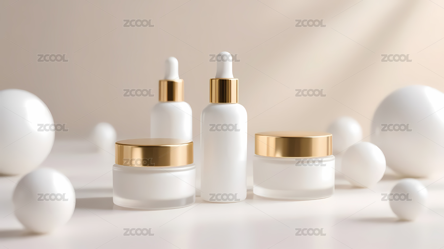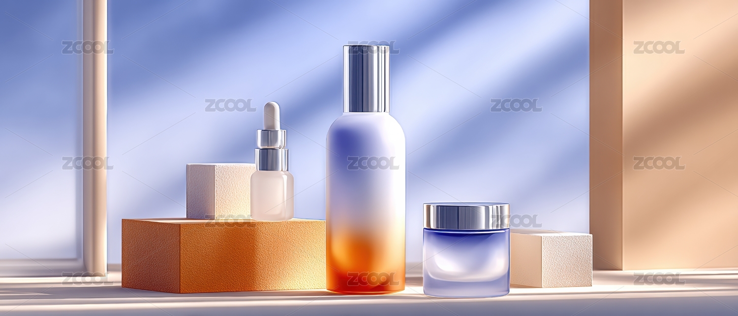 美容护肤题材的化妆品瓶子广告场景