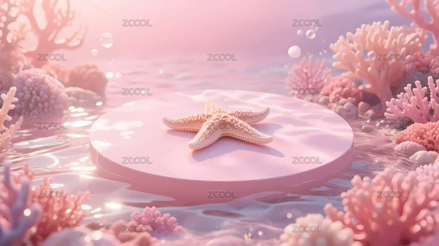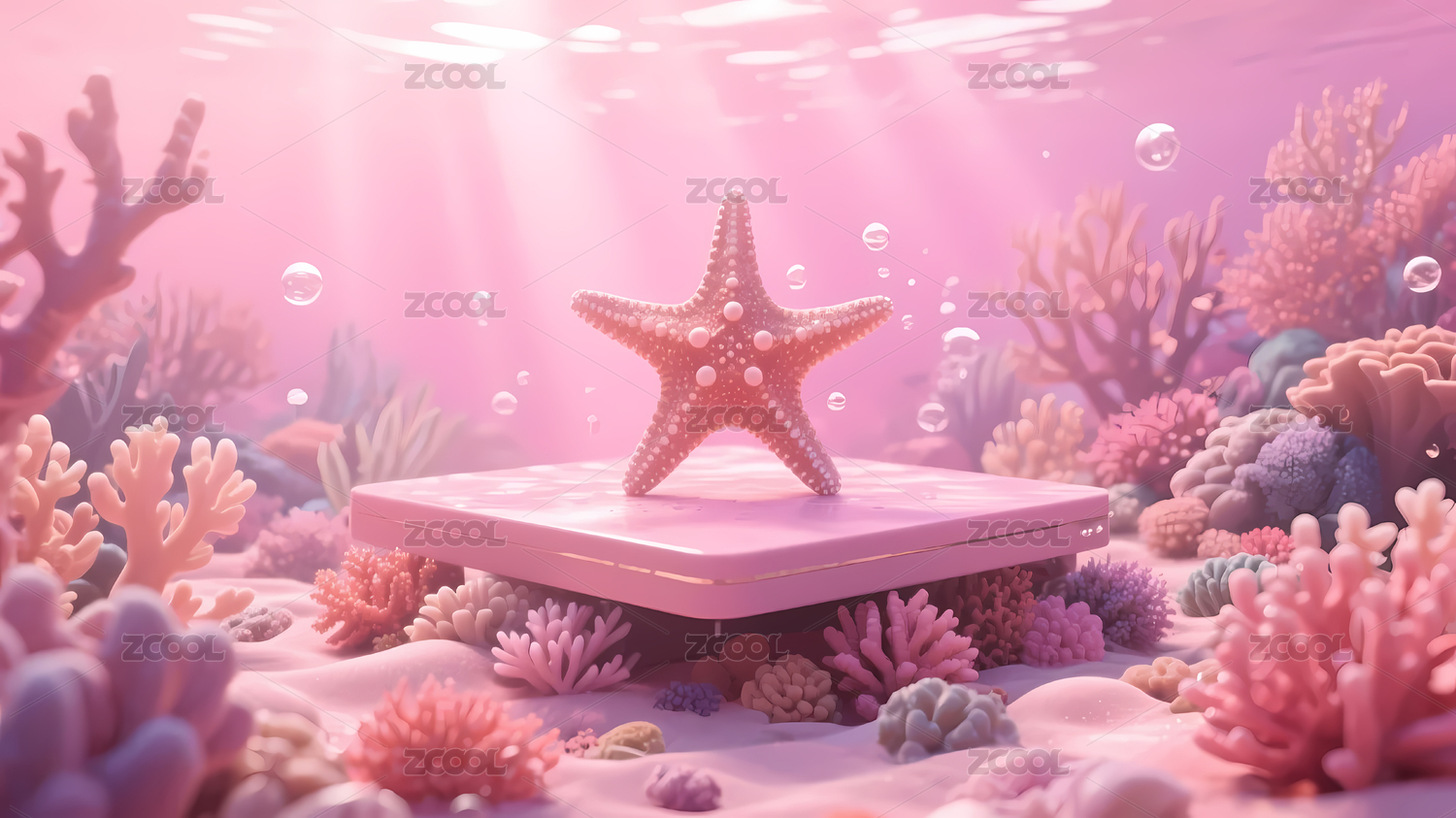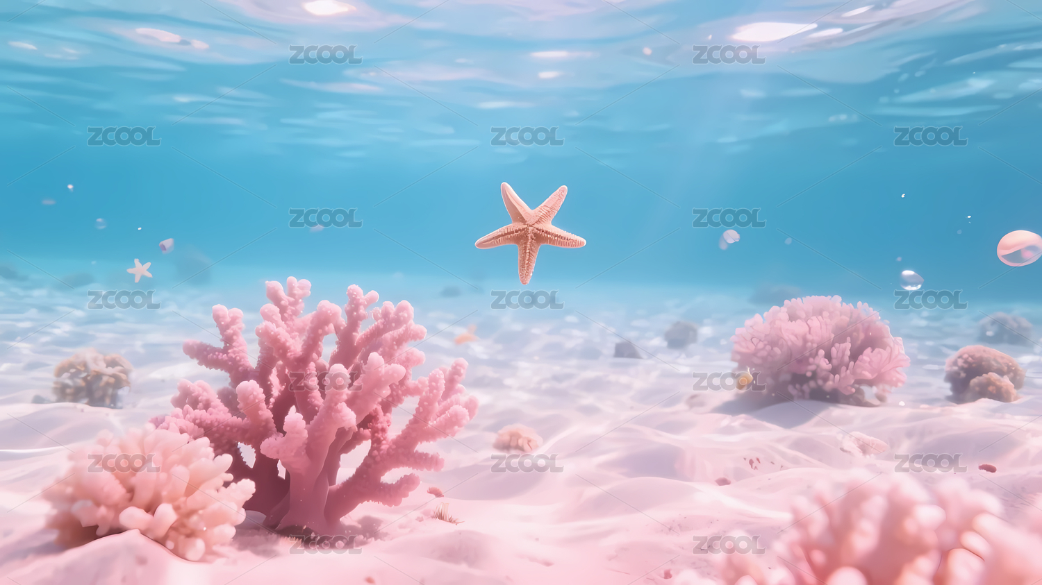 自然,粉色,紫色,珊瑚,海底,梦幻,水下,海星,水面,光影