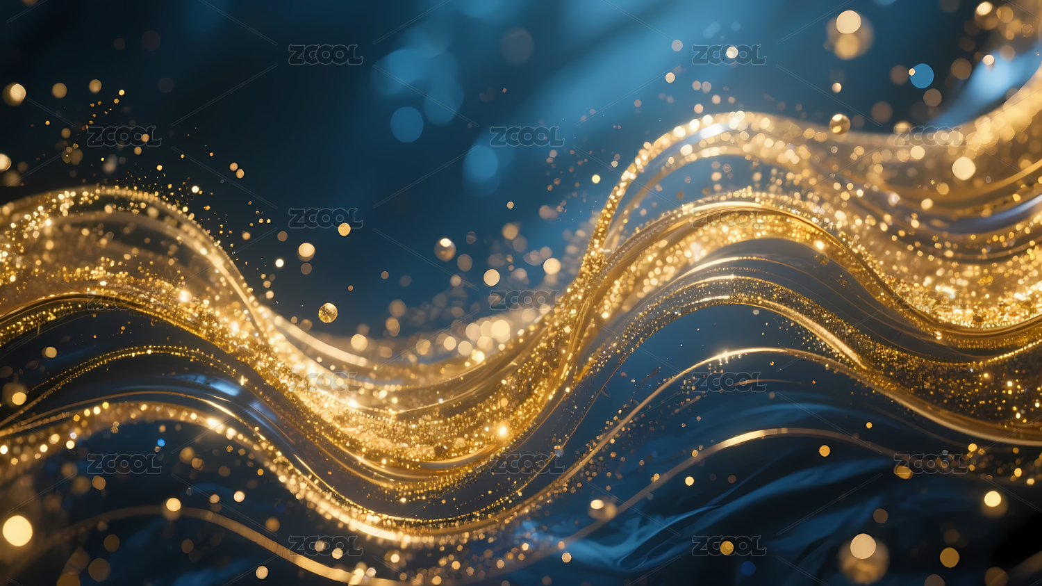 背景,神秘,金色,深蓝,线条,波浪,视觉,闪烁,华丽,光点