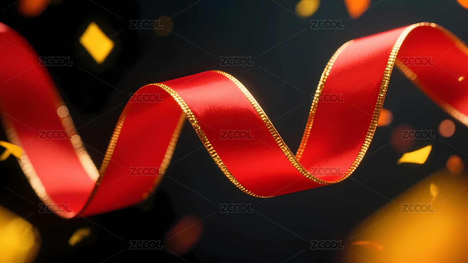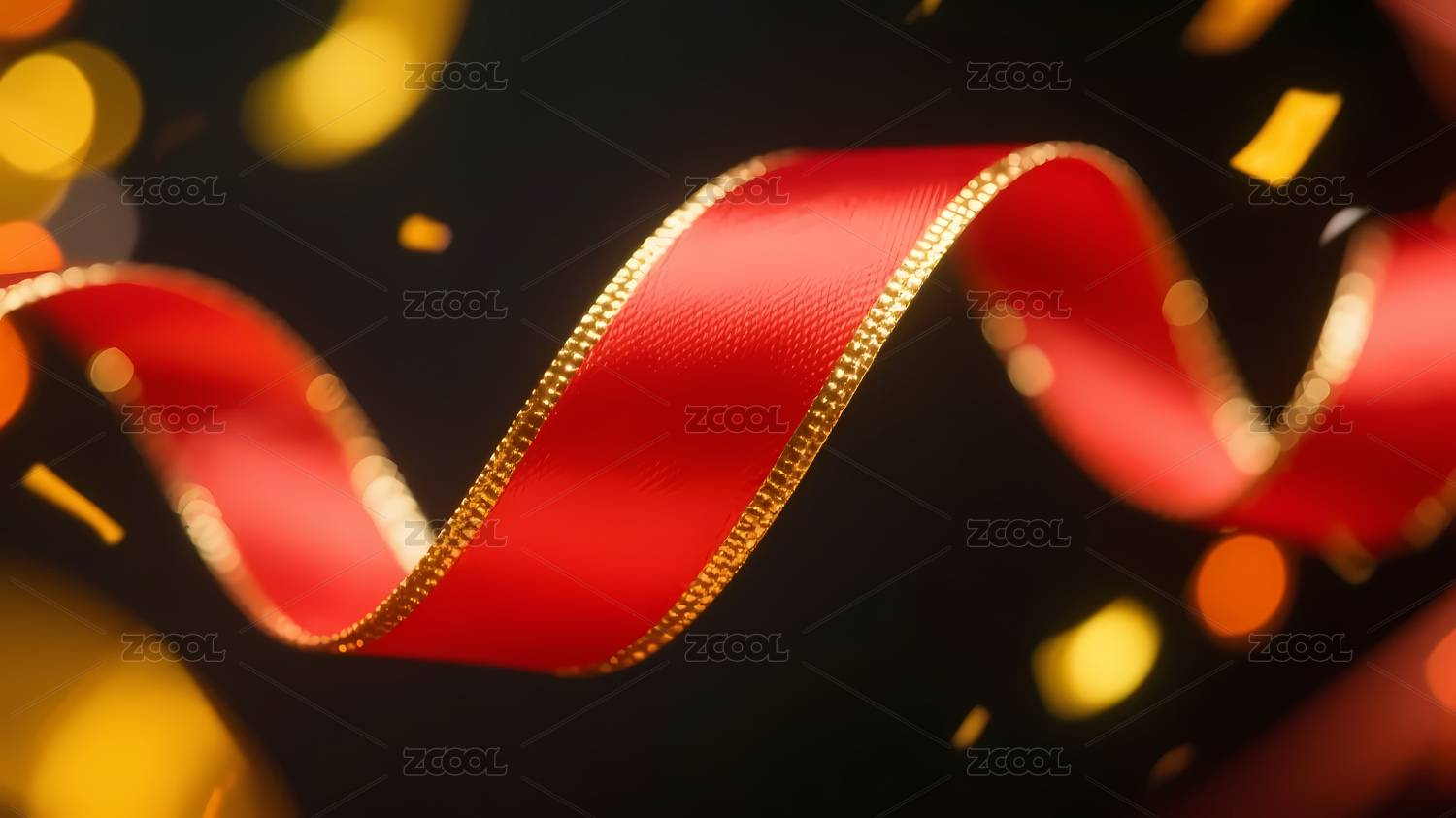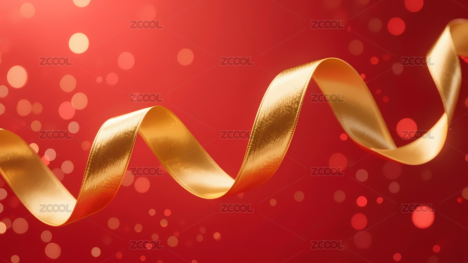 红色丝带金白光斑背景