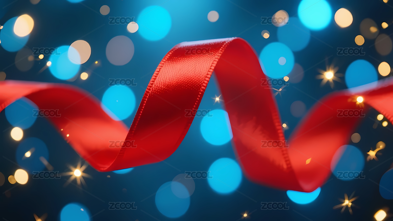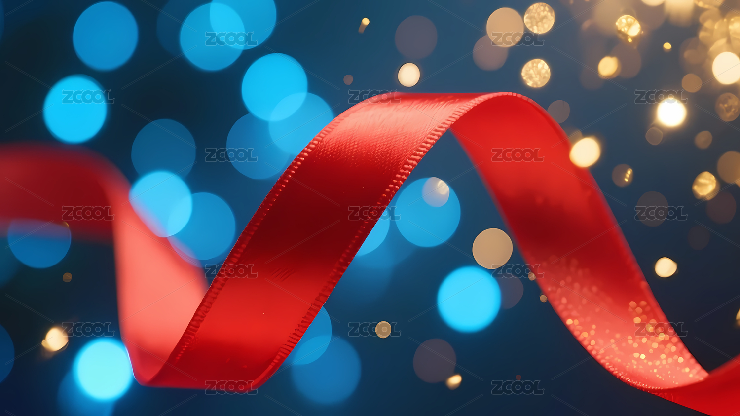 红色丝带与金色光斑