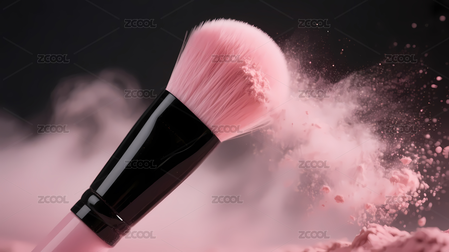 黑柄化妆刷粉色粉末