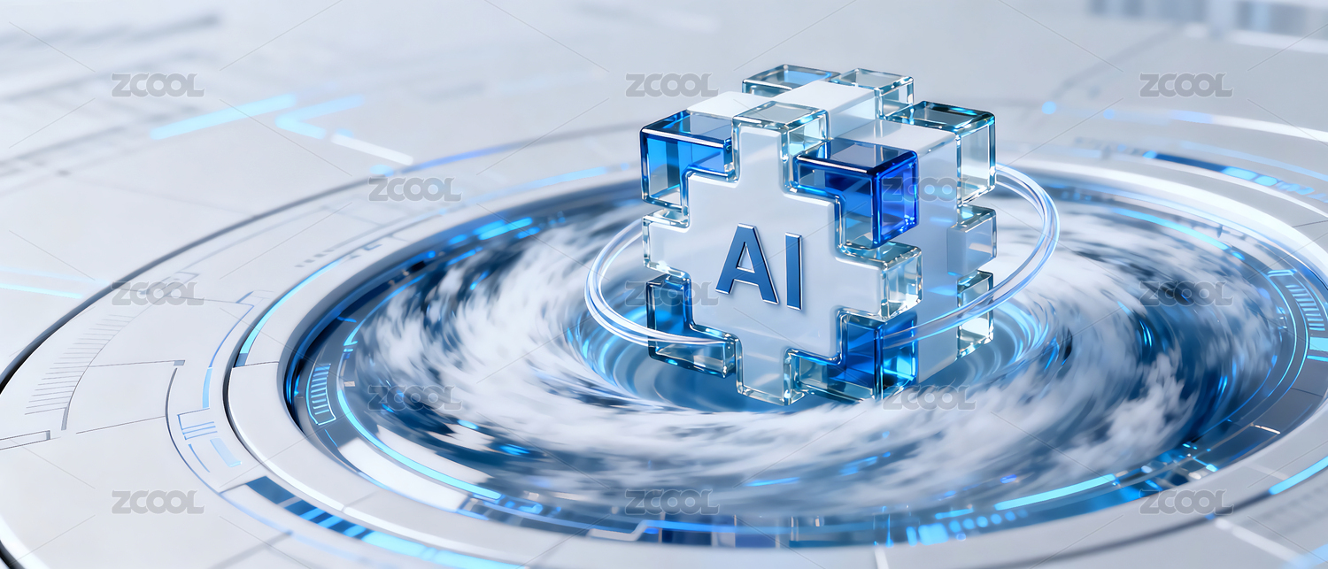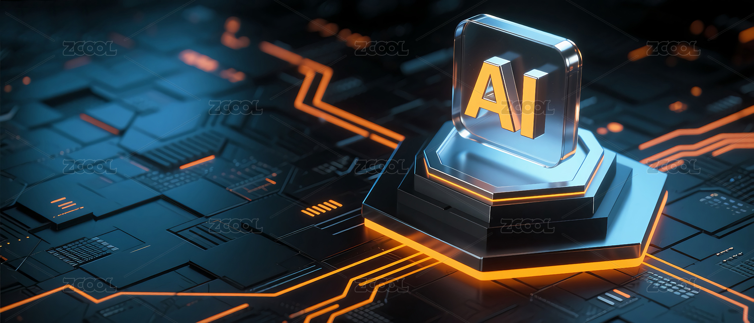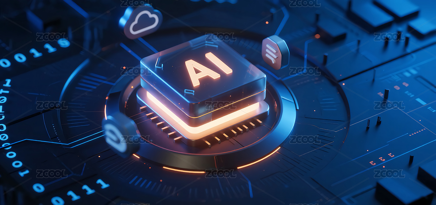 蓝色,科技,图标,AI芯片,商务,主视觉,渐变,光影,毛玻璃,人工智能