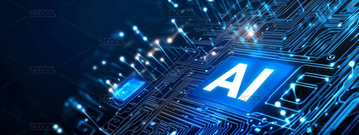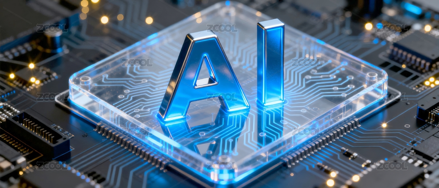 蓝色,科技,图标,AI芯片,商务,主视觉,渐变,光影,毛玻璃,人工智能