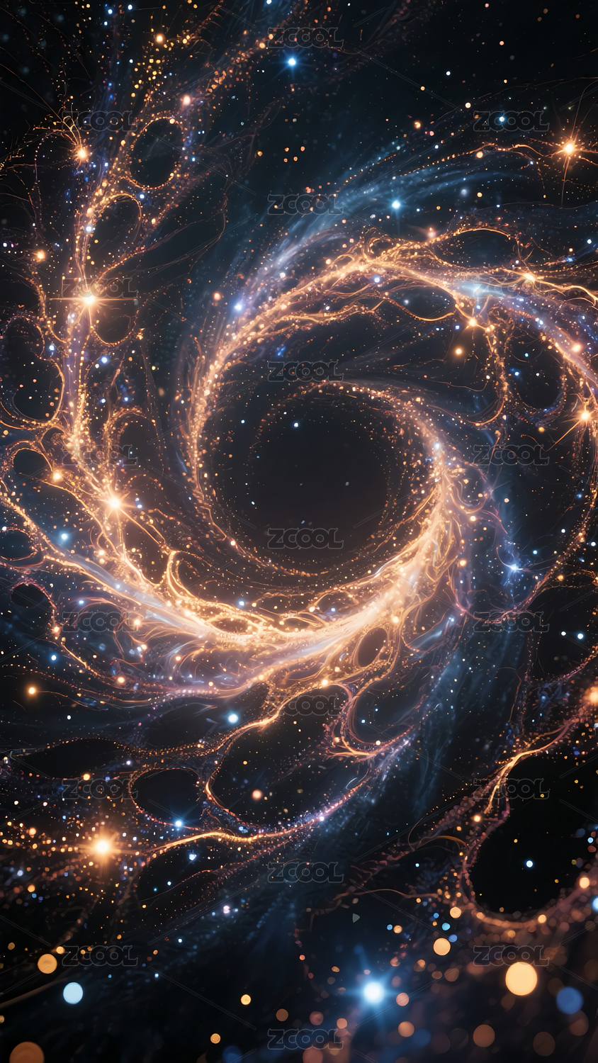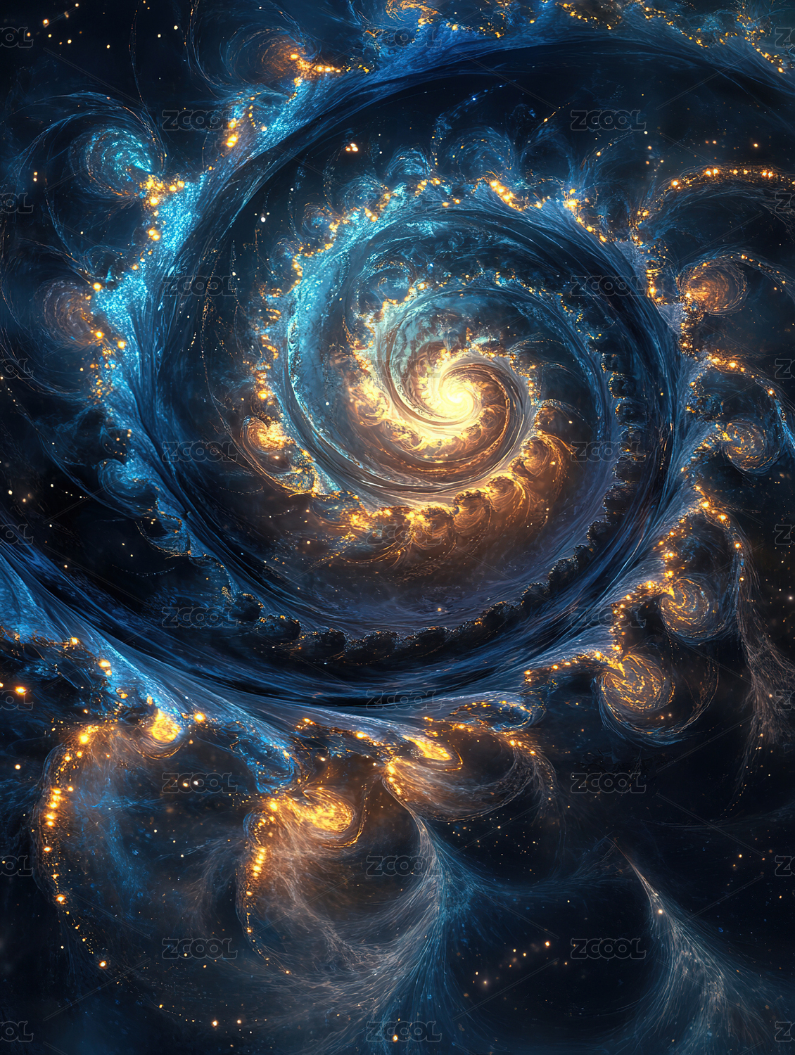 蓝色宇宙漩涡,金纹点缀神秘时空