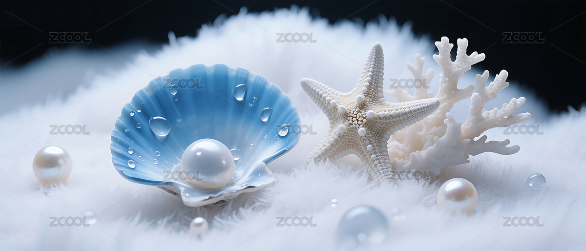 梦幻,花边,海滩,毛绒,蓝色,贝壳,海星,白色,唯美,风景