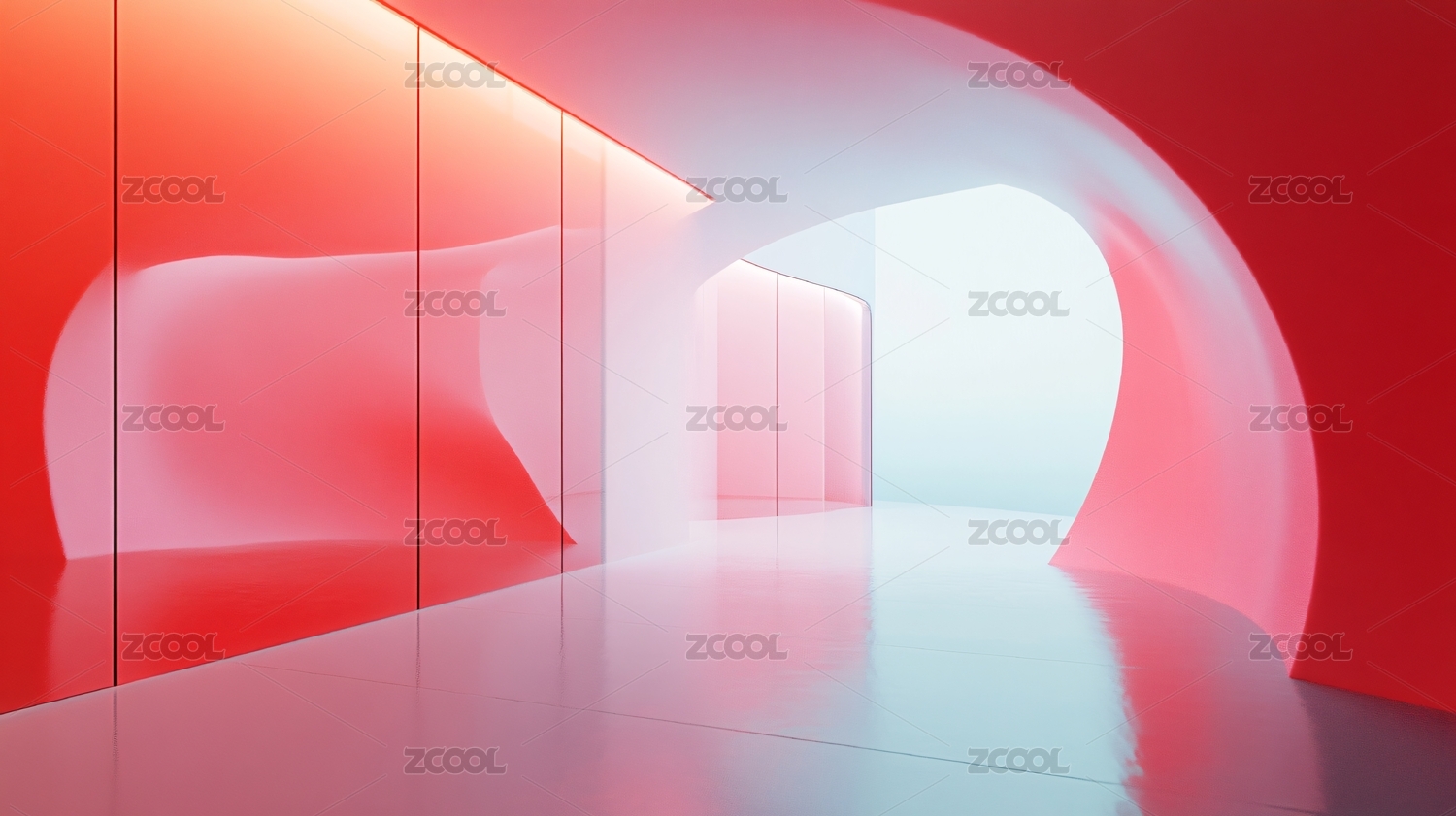 橙色现代几何建筑空间平台3D渲染抽象背景