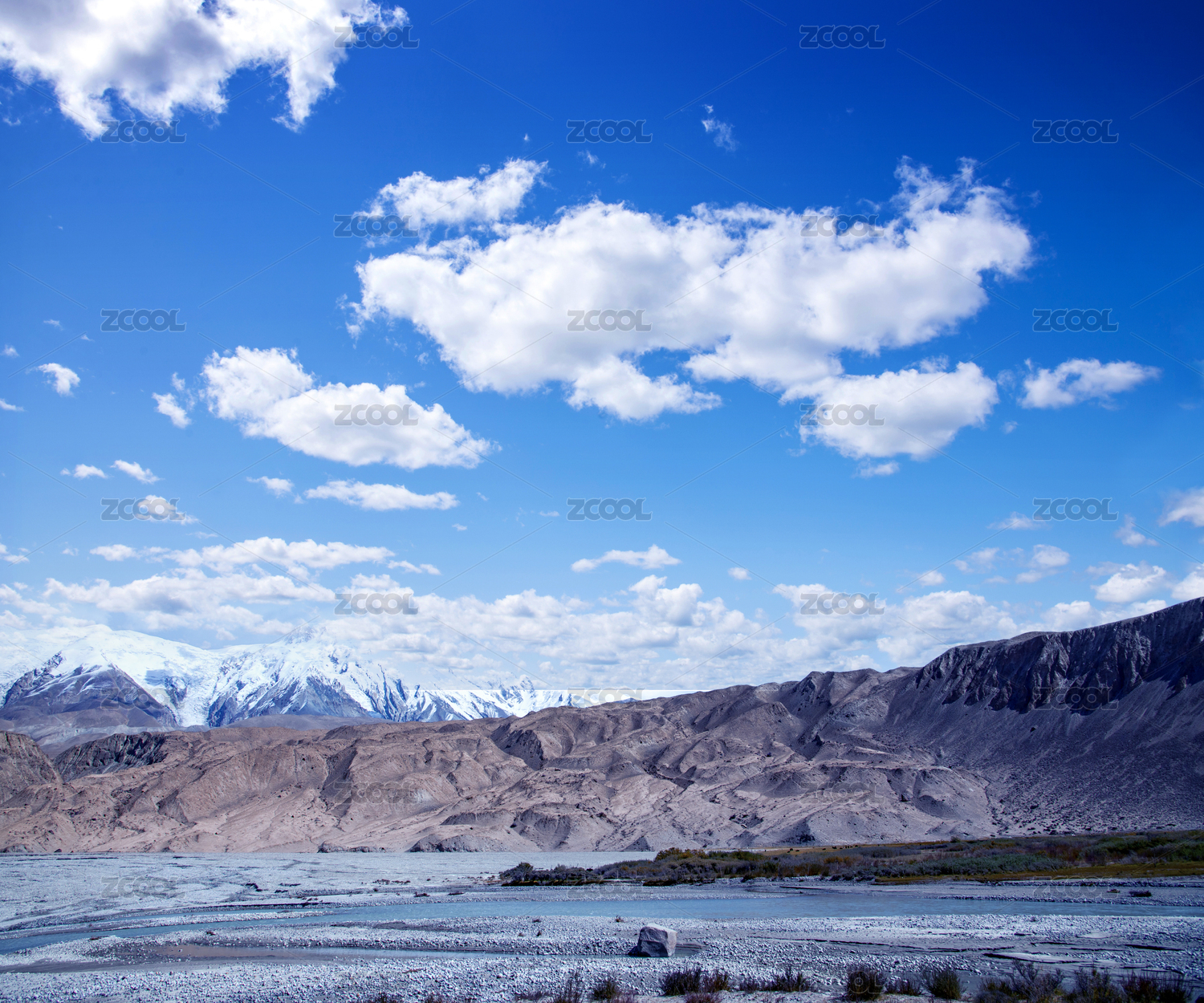 中国新疆喀什至塔县塔什库尔干河谷边的雪山