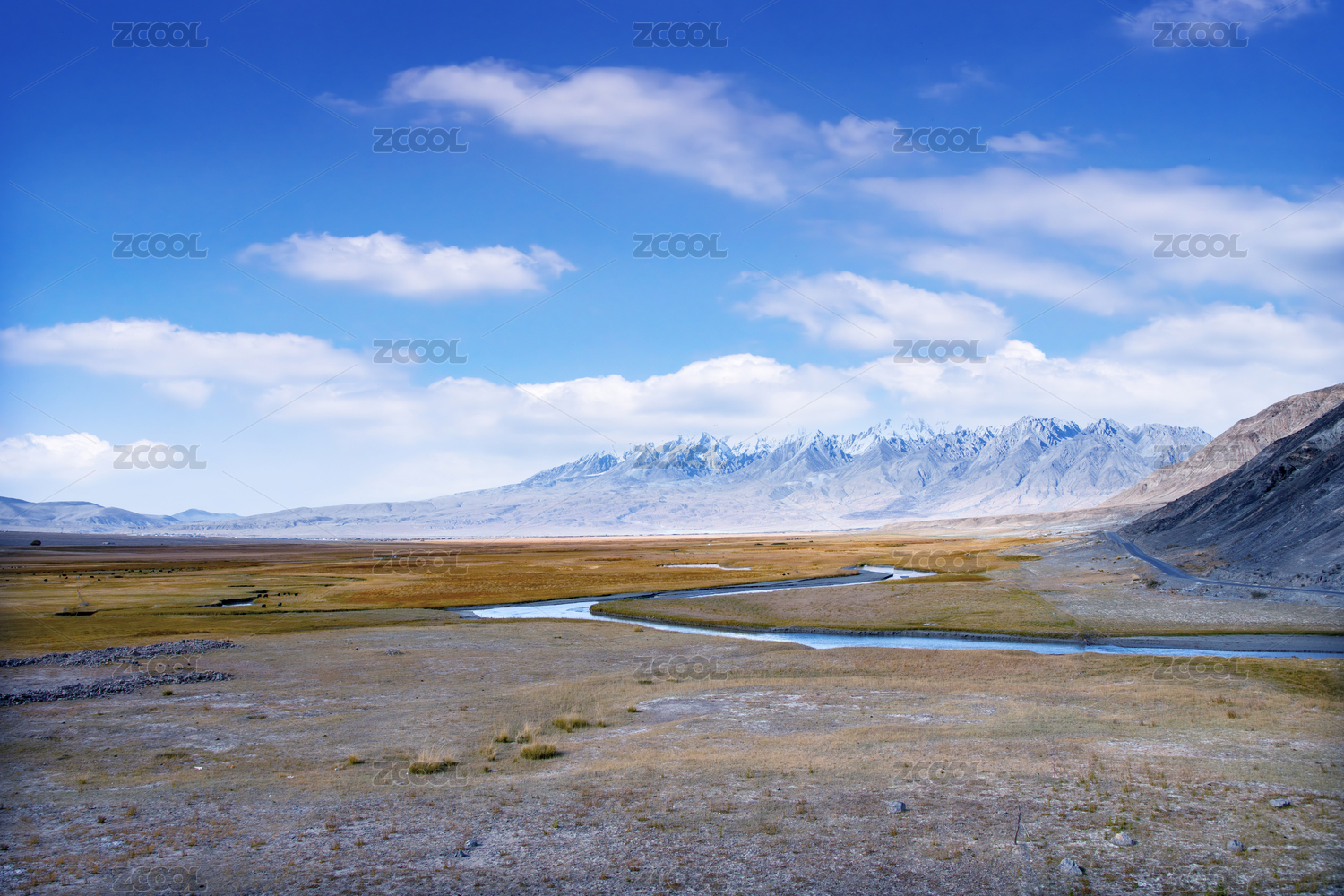 中国新疆喀什至塔县塔什库尔干河谷边草原